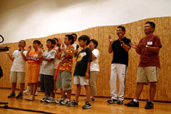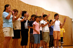 | シオマネキやトントンミーなど、いくつ生き物が見つかったかな? | 即興にも係わらず大いに盛り上がった「組対抗歌合戦」 1組 |