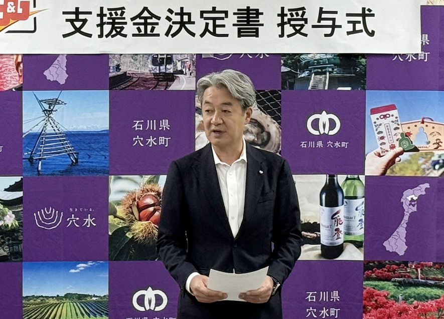 石川県穴水町にて、「防災拠点の設置および災害時相互支援体制構築」事業の決定書授与式を行った。