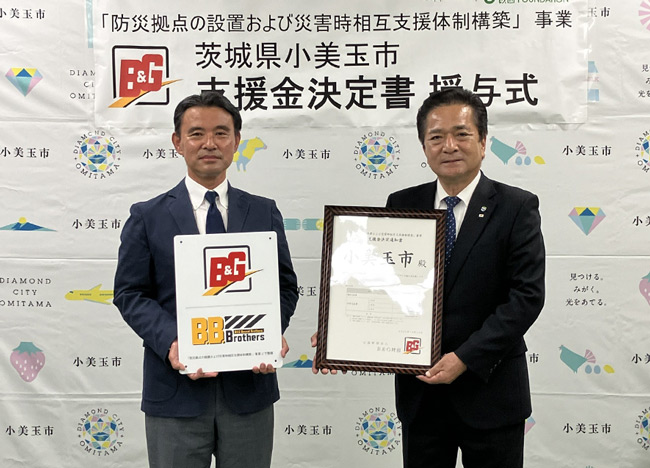 茨城県小美玉市にて、「防災拠点の設置および災害時相互支援体制構築」事業の決定書授与式を行った。