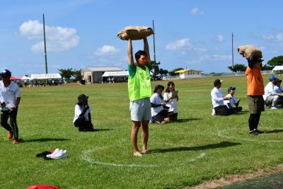 こちらの種目は、30kgの俵を長い時間上げ続けられた人が勝者です。