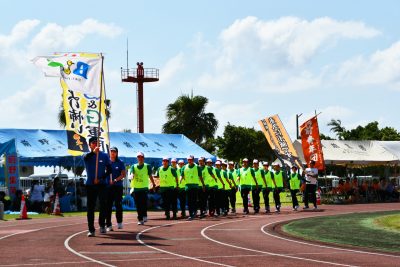 そして何より、今回の町民体育祭では、天城町の院田教育長の粋な計らいにより、昼休みの時間を利用してB&Gチームによる行進を行いました。