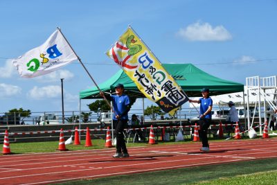 旗手を務めたのは、天城町よりB&G財団に出向中の芝田教官。現在彼は東京を満喫していますが(笑)、故郷で立派な教官姿を披露しました。もう一人は、新潟が生んだ鬼教官の牧岡咲良。