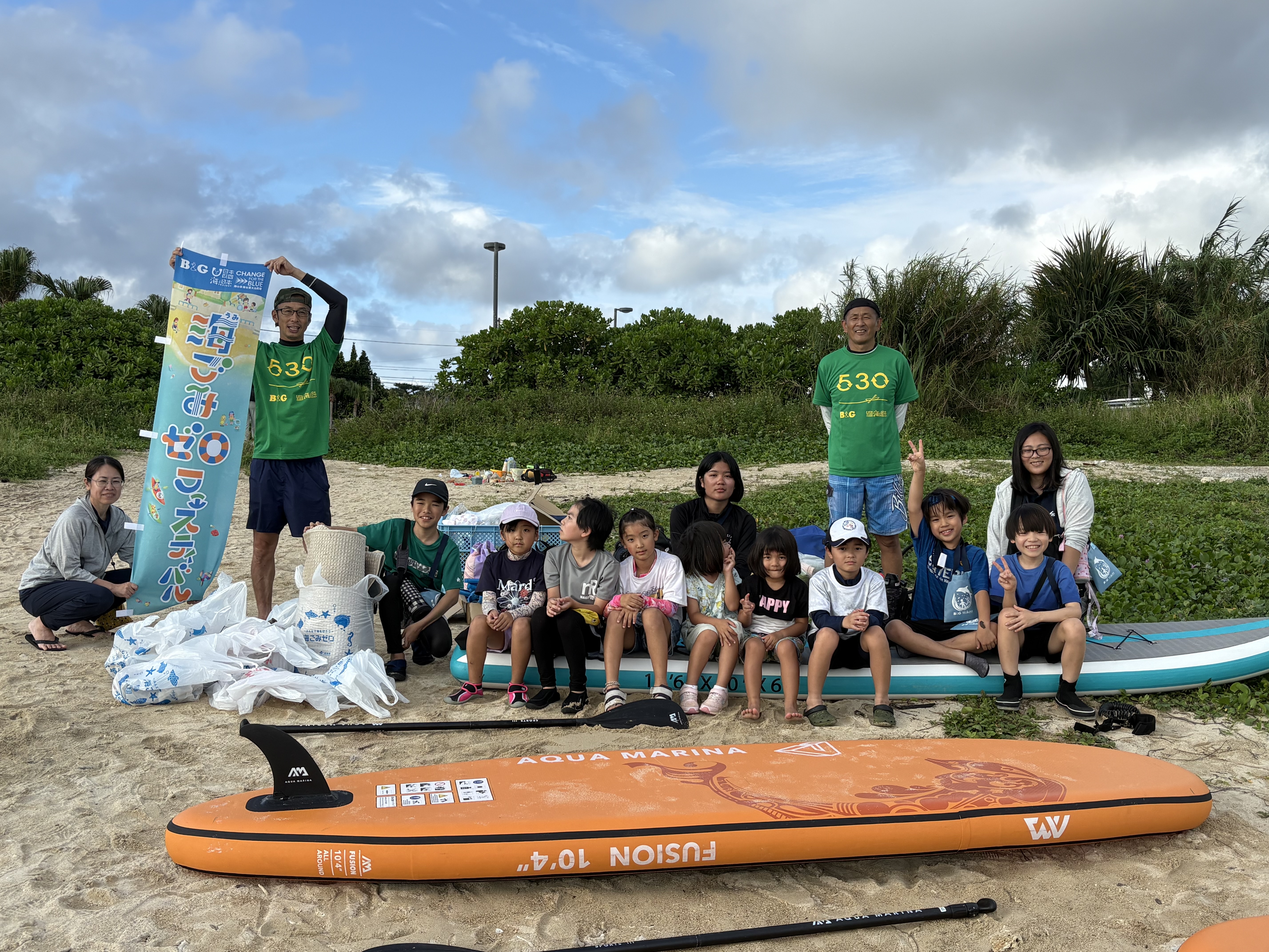 小学2年生以上を対象に、募集を行いビーチクリーンとSUP体験会を同時開催しました!!