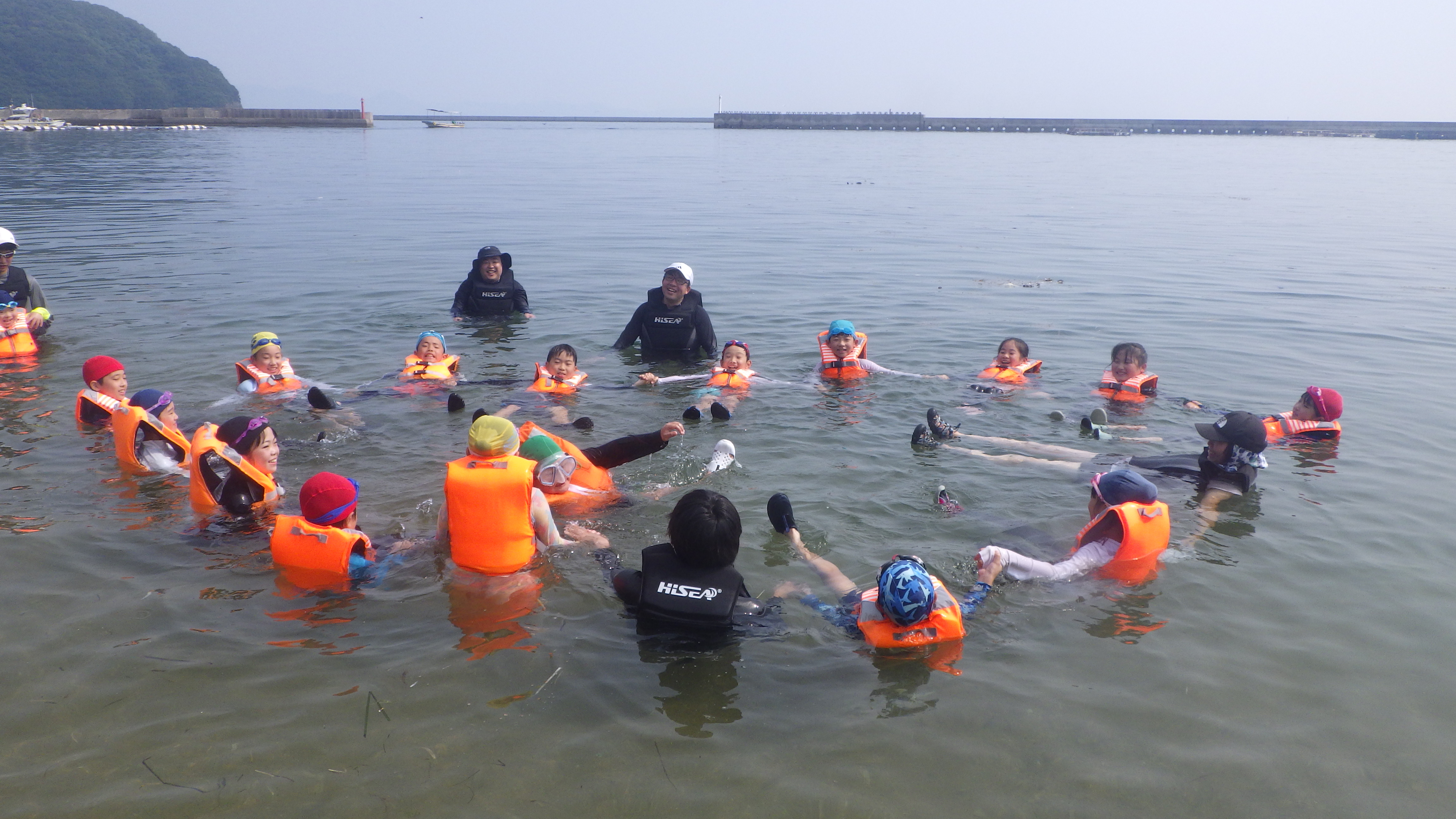 水辺の危険について、また命を守る行動の大切さを学ぶ教室です。 家島の豊かな海にふれ、ふるさとの自然を大切にしようとする意欲を高めるイベントです。