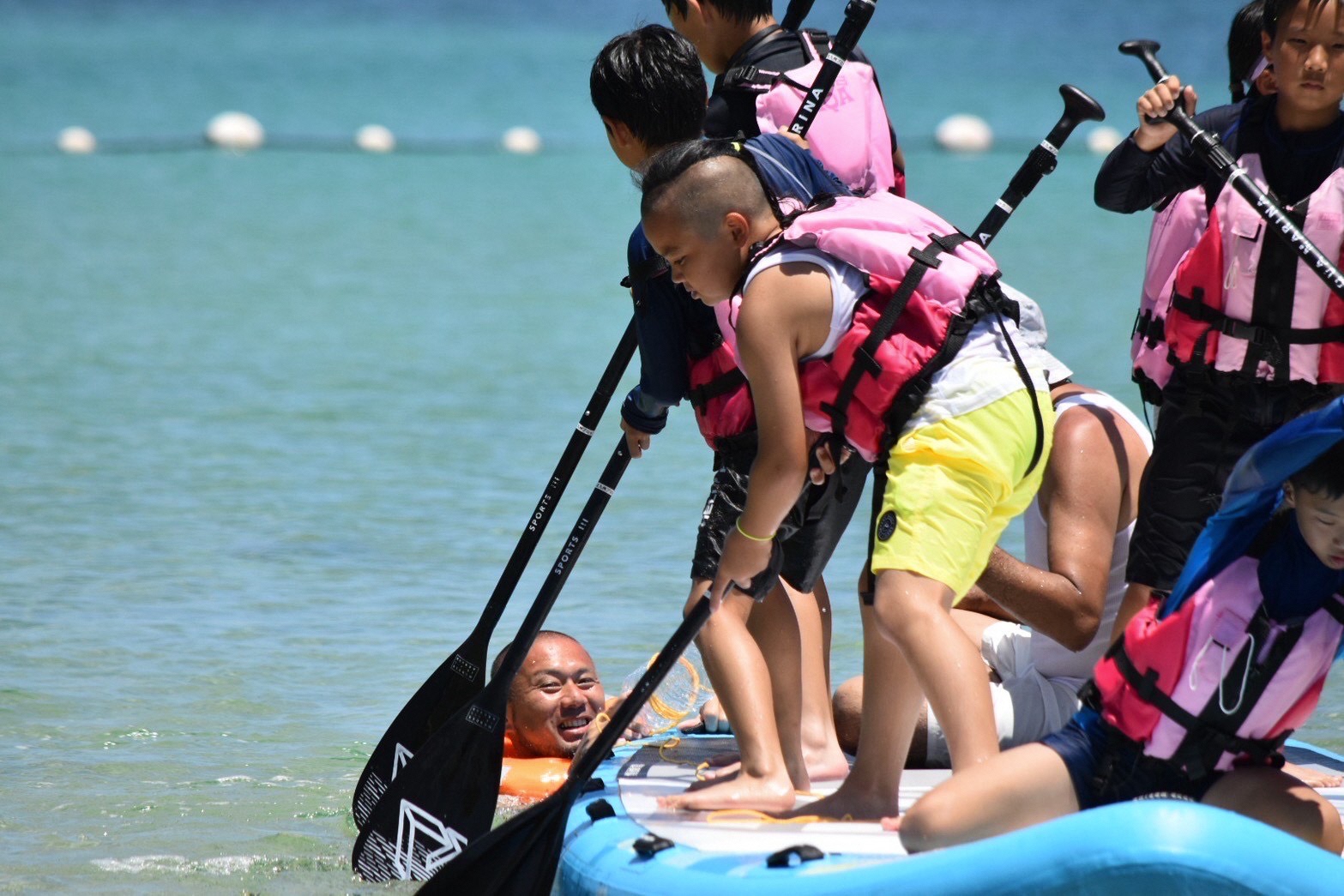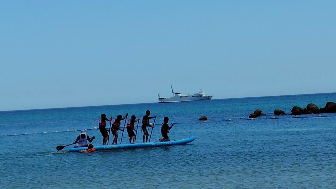「海ごみ紙芝居(マイクロプラスチック」「海洋ごみ拾い」「カヌー」「SUP」「Big Sup」「救助訓練タイムレース」