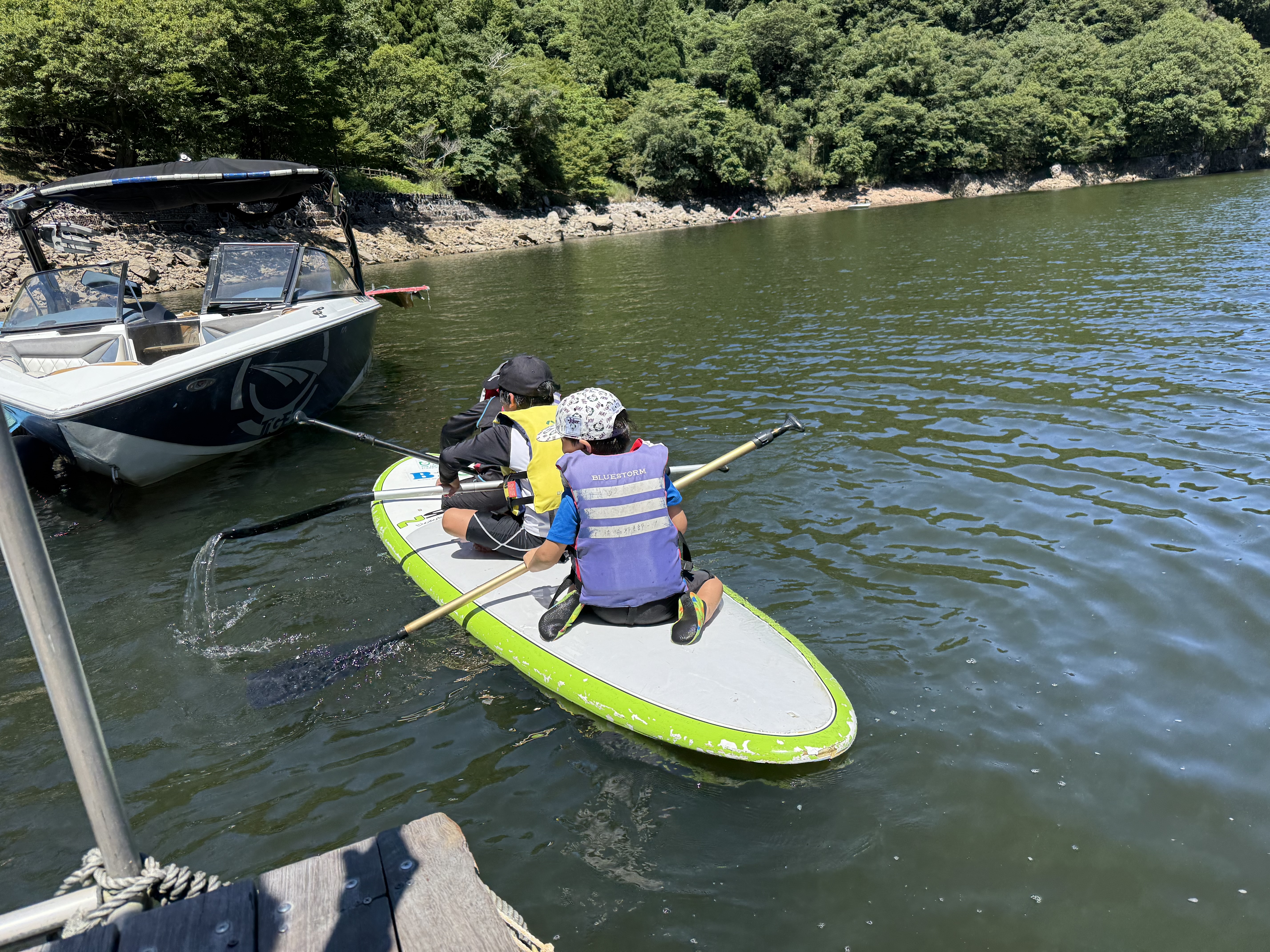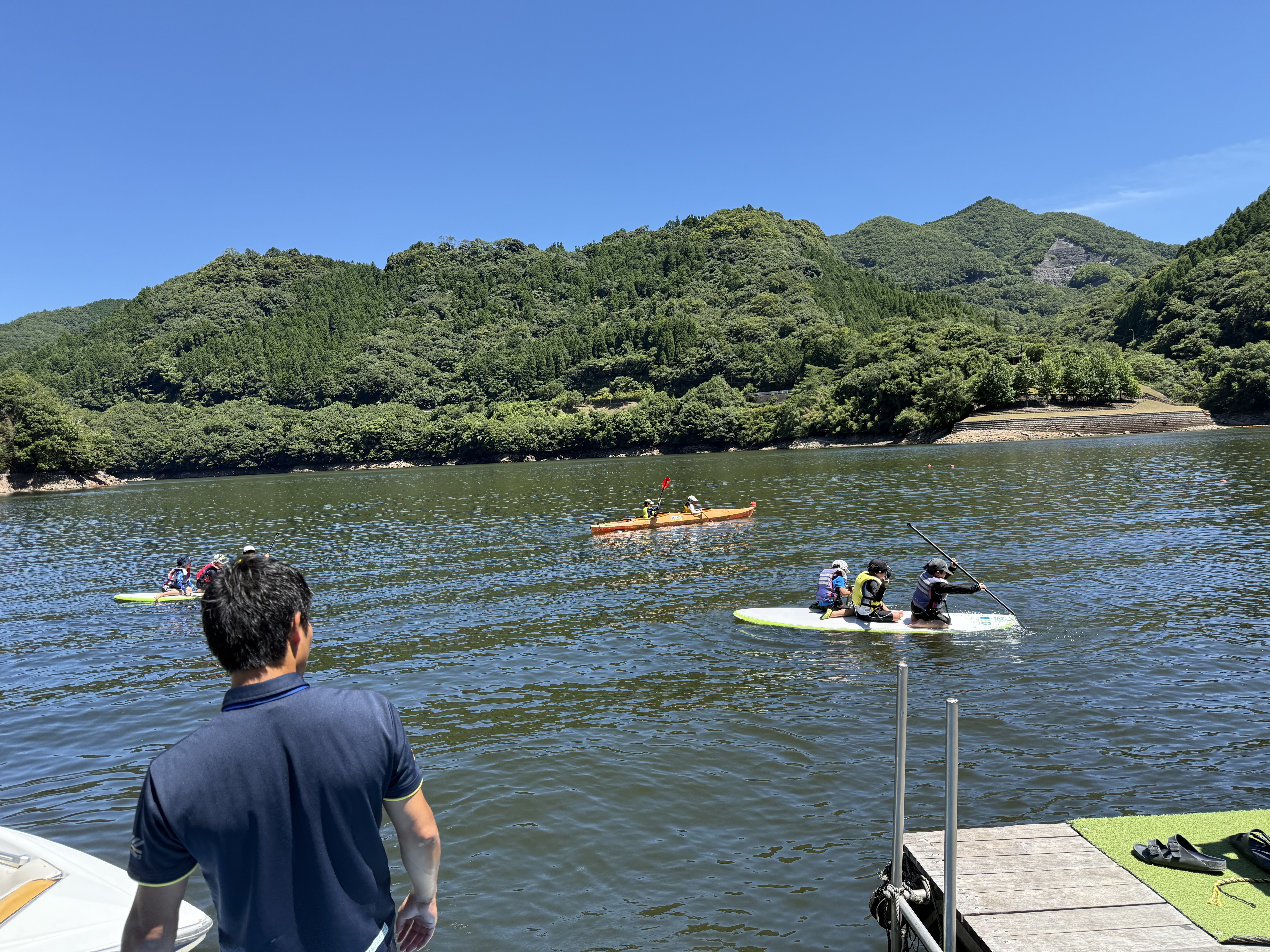 自然の中で遊ぶ機会が少なくなった子どもたちに、川崎町では体験できないSUP体験を通じて、体幹トレーニングをしながら自然とアクアスポーツに親しんでもらう。