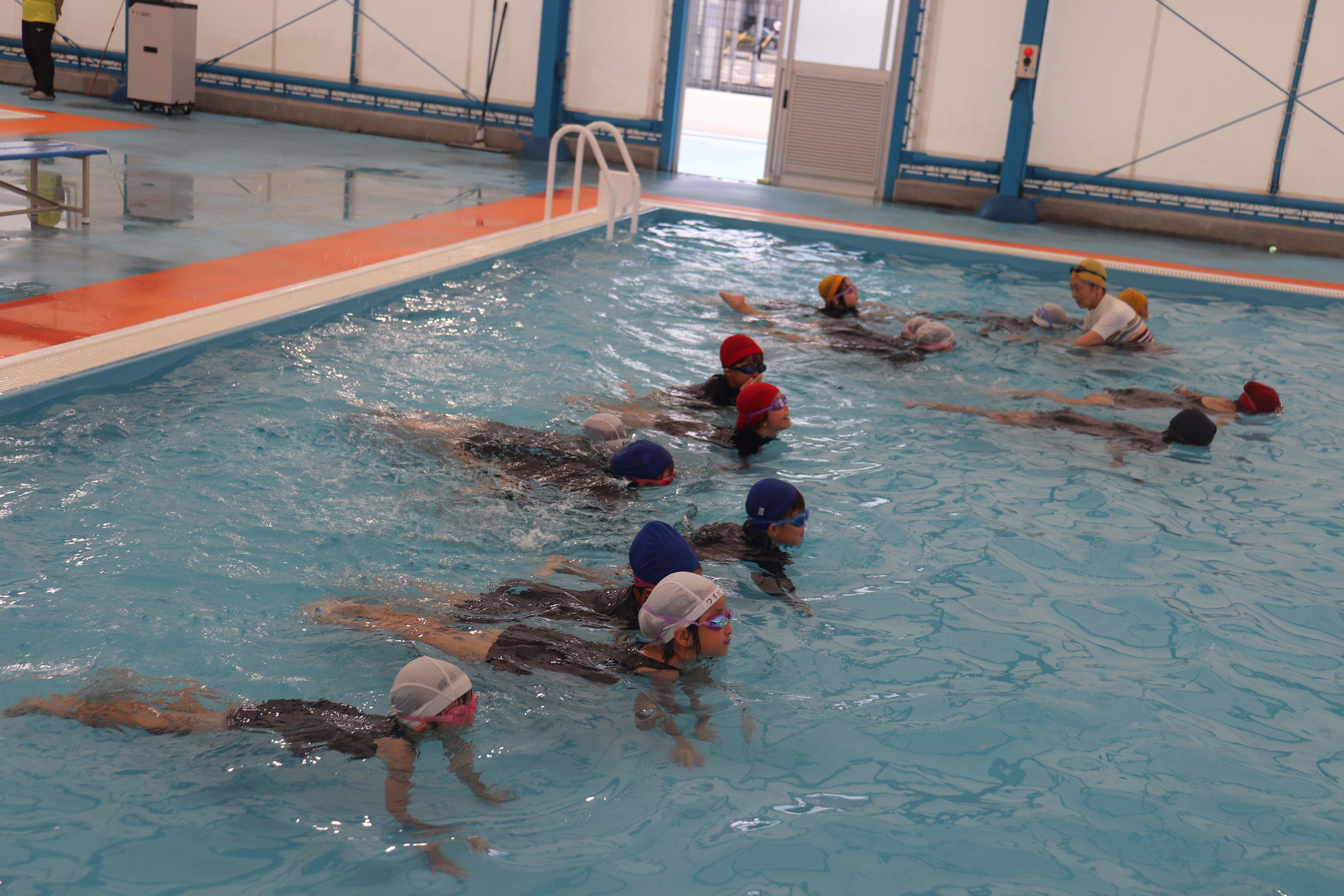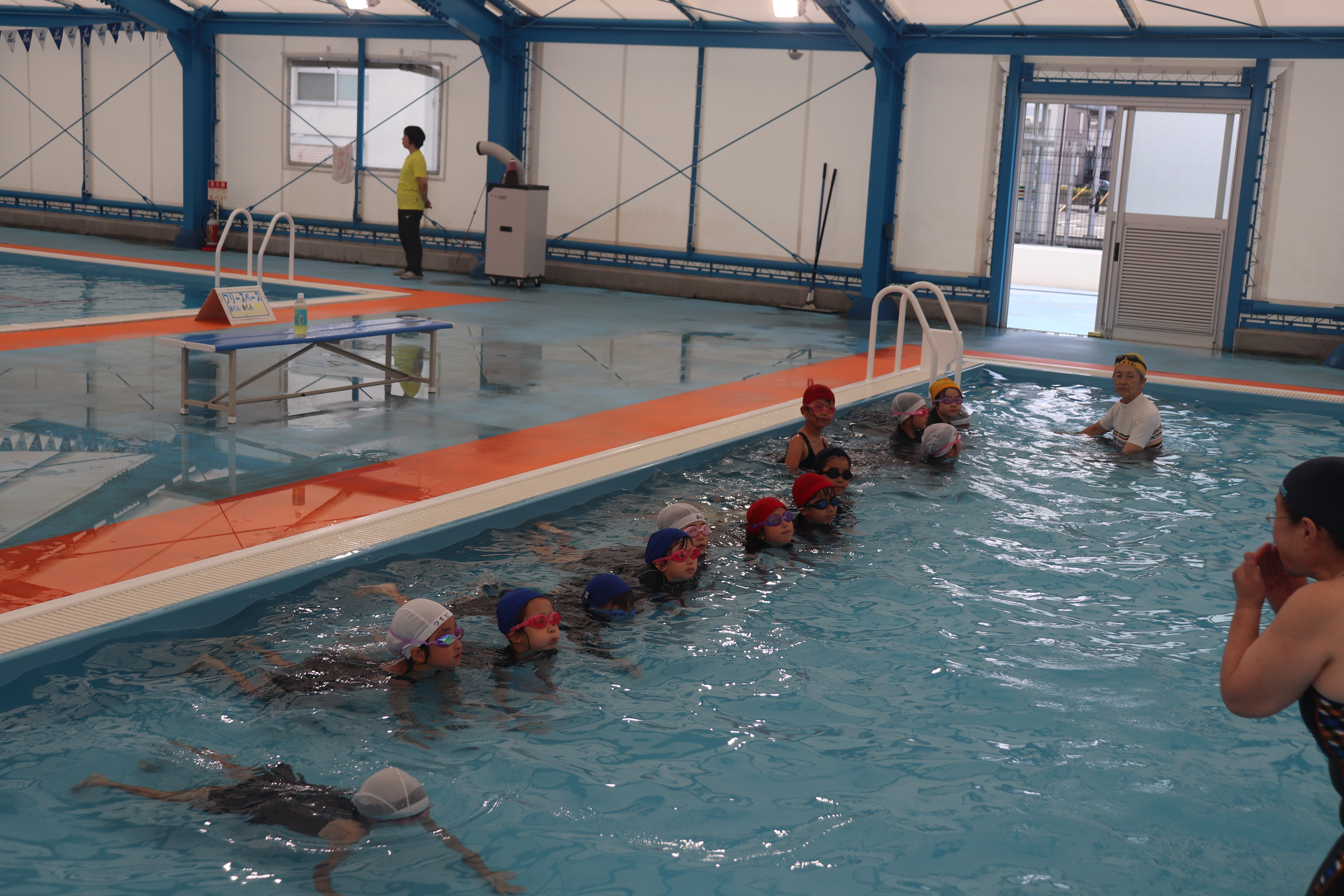 「プールが怖い」、「水に顔をつけるのが苦手」といった小学生を対象に、水に対する苦手意識を克服し、けのびや息継ぎを学習する水なれプログラムを行います。