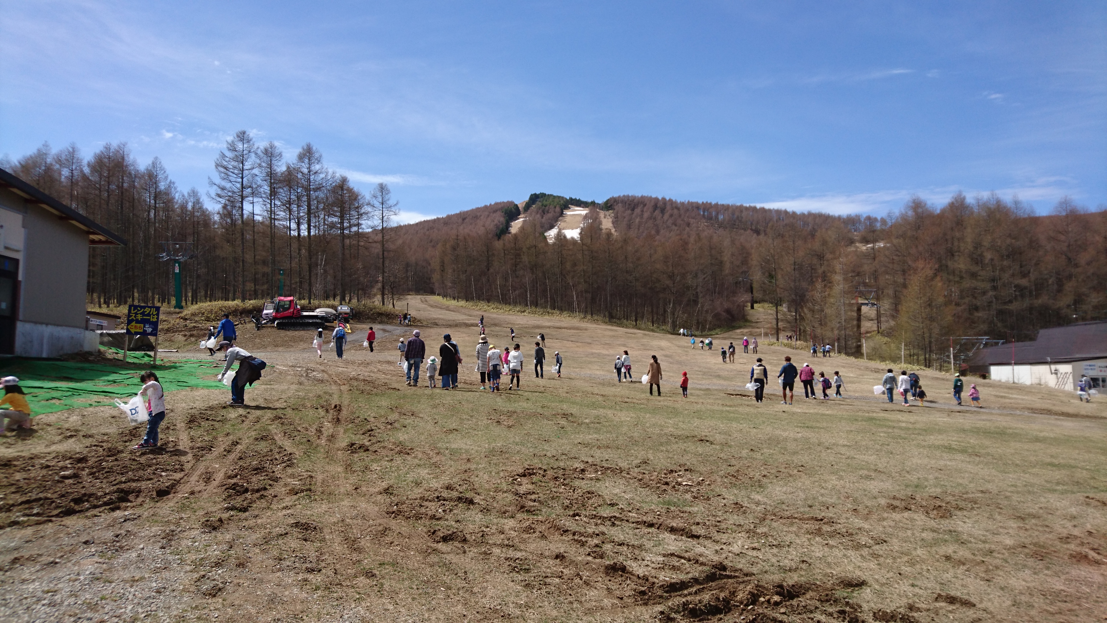 スキー教室な参加した子供達とその家族で、会場を使わせていただいたお礼の気持ちを込めてゴミ拾いをしました。