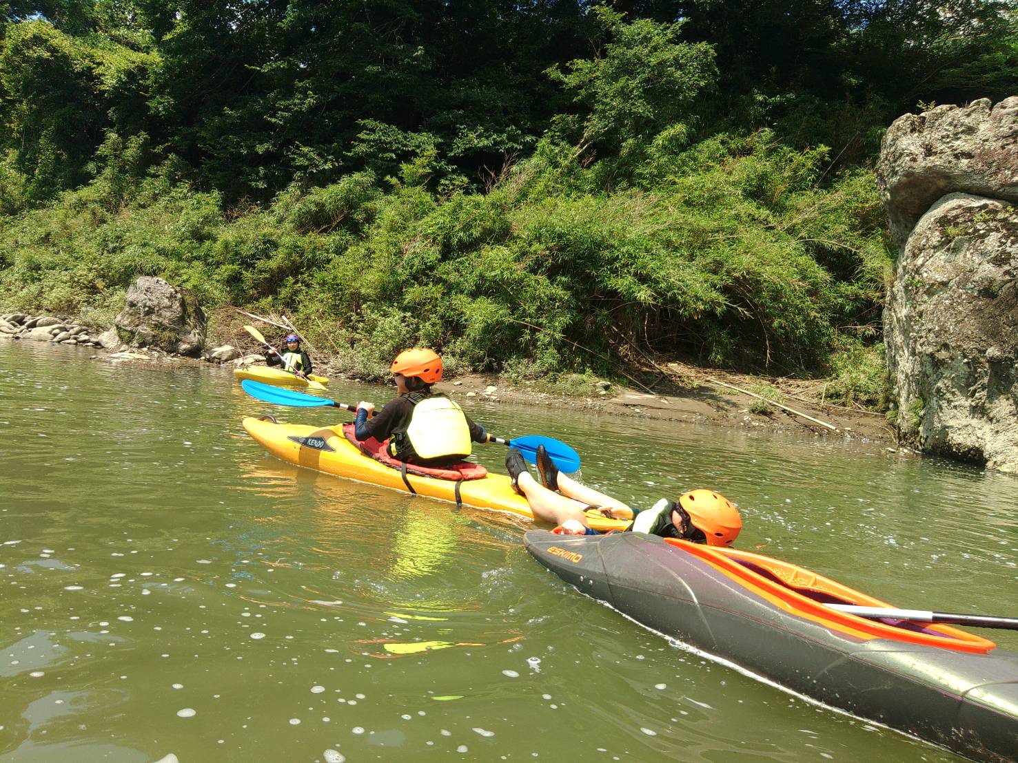 カヌー体験会、川水辺の安全教室(川に流された場合の対処法の講座)