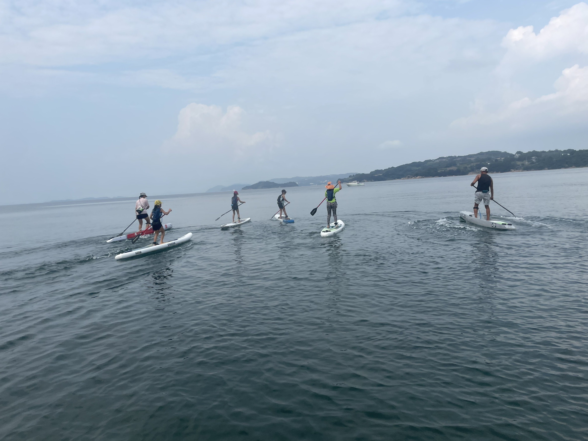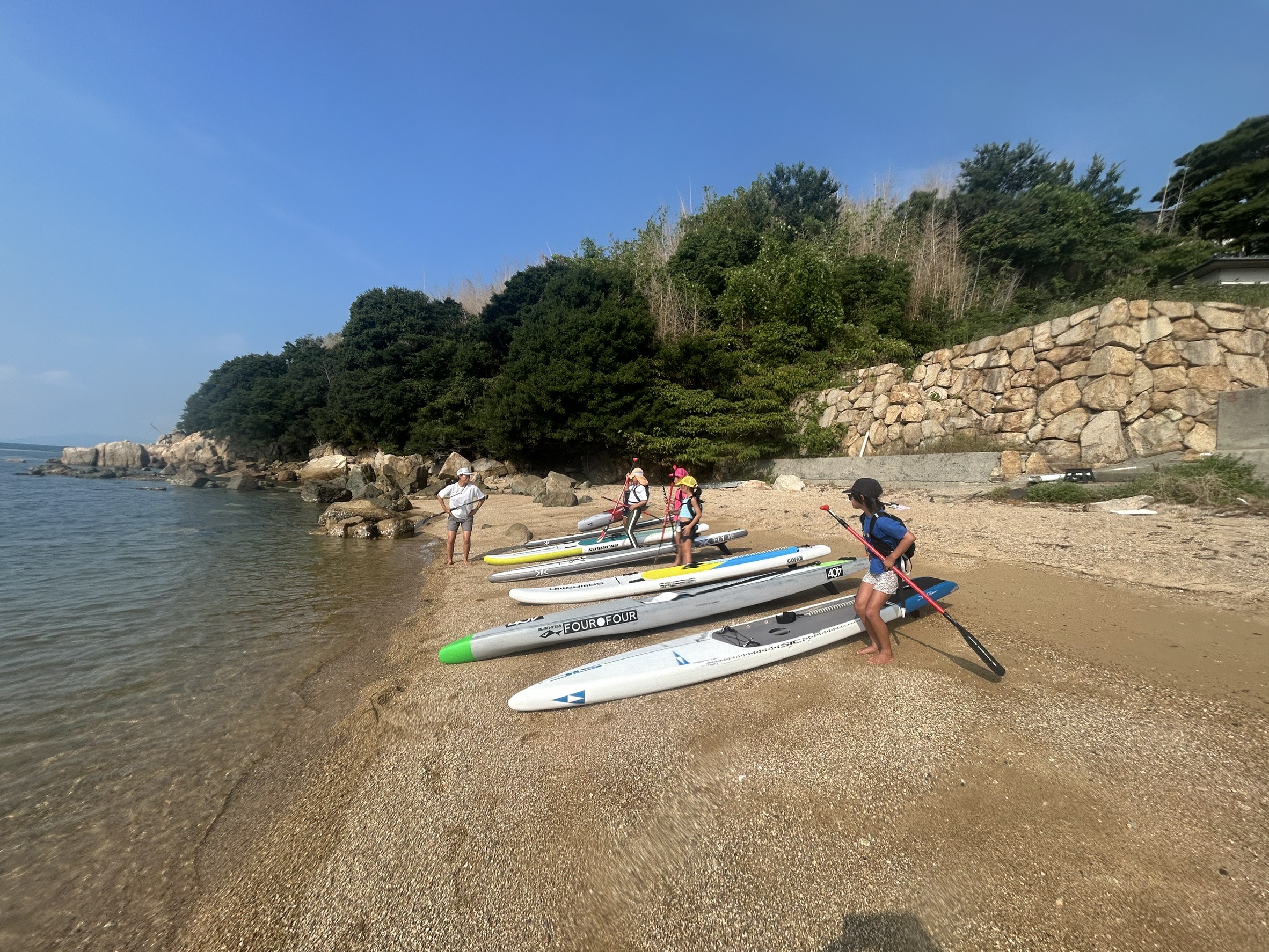 夏休みのキッズSUPイベントとして牛窓港からフェリーで約5分の前島にて一泊二日の合宿を行いSUPの技術向上と共同生活の協力を経験させる為に行いました。