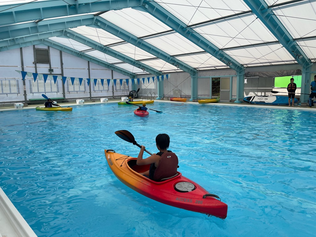 八女市星野B&G海洋センターのプールで行われる初心者カヌー教室です。