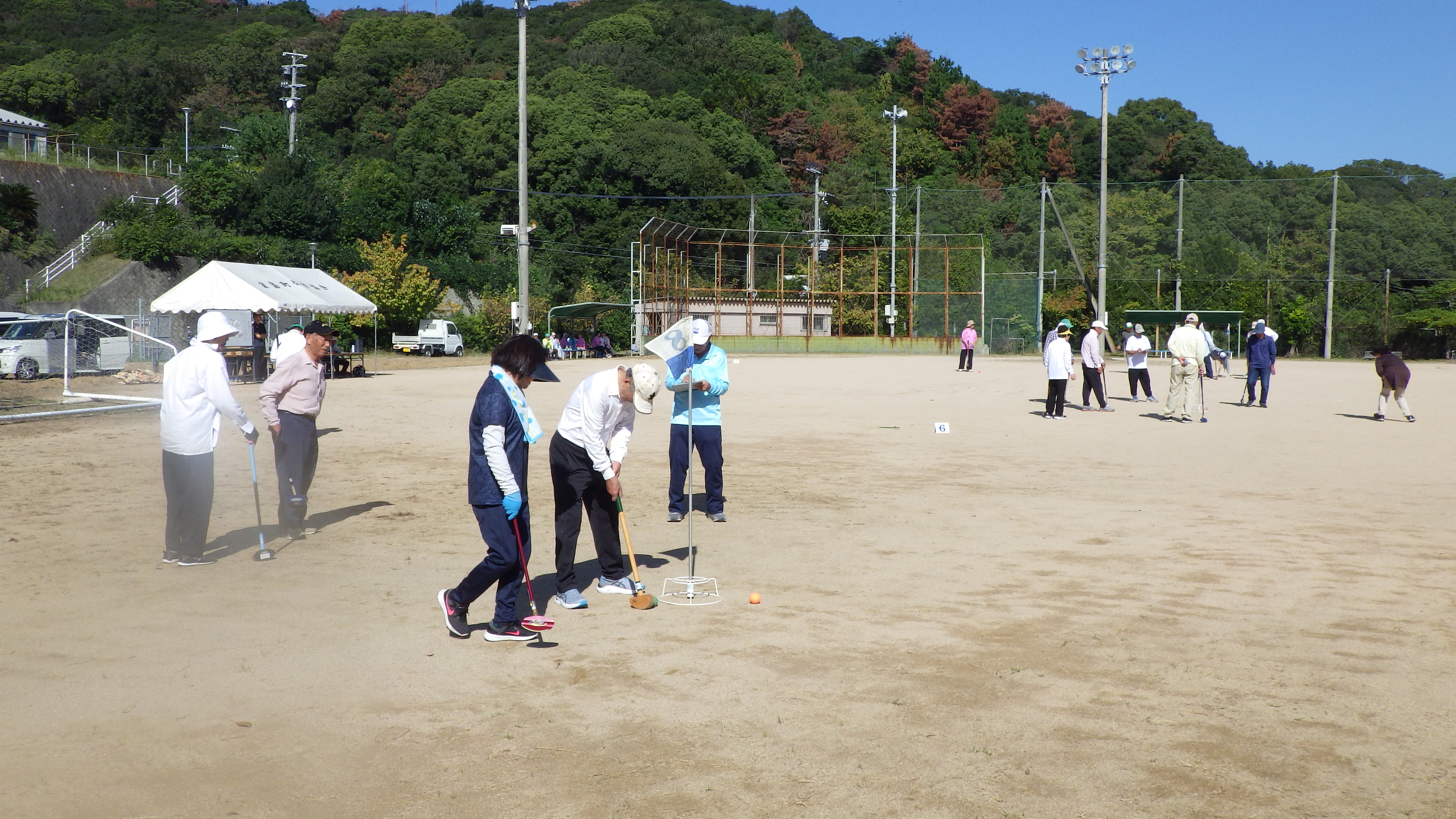家島のそれぞれの地区が集まって、グラウンドゴルフ大会を開催しました。普段の練習を発揮する場・地区ごとの交流の場を提供して、より良い大会になりました。