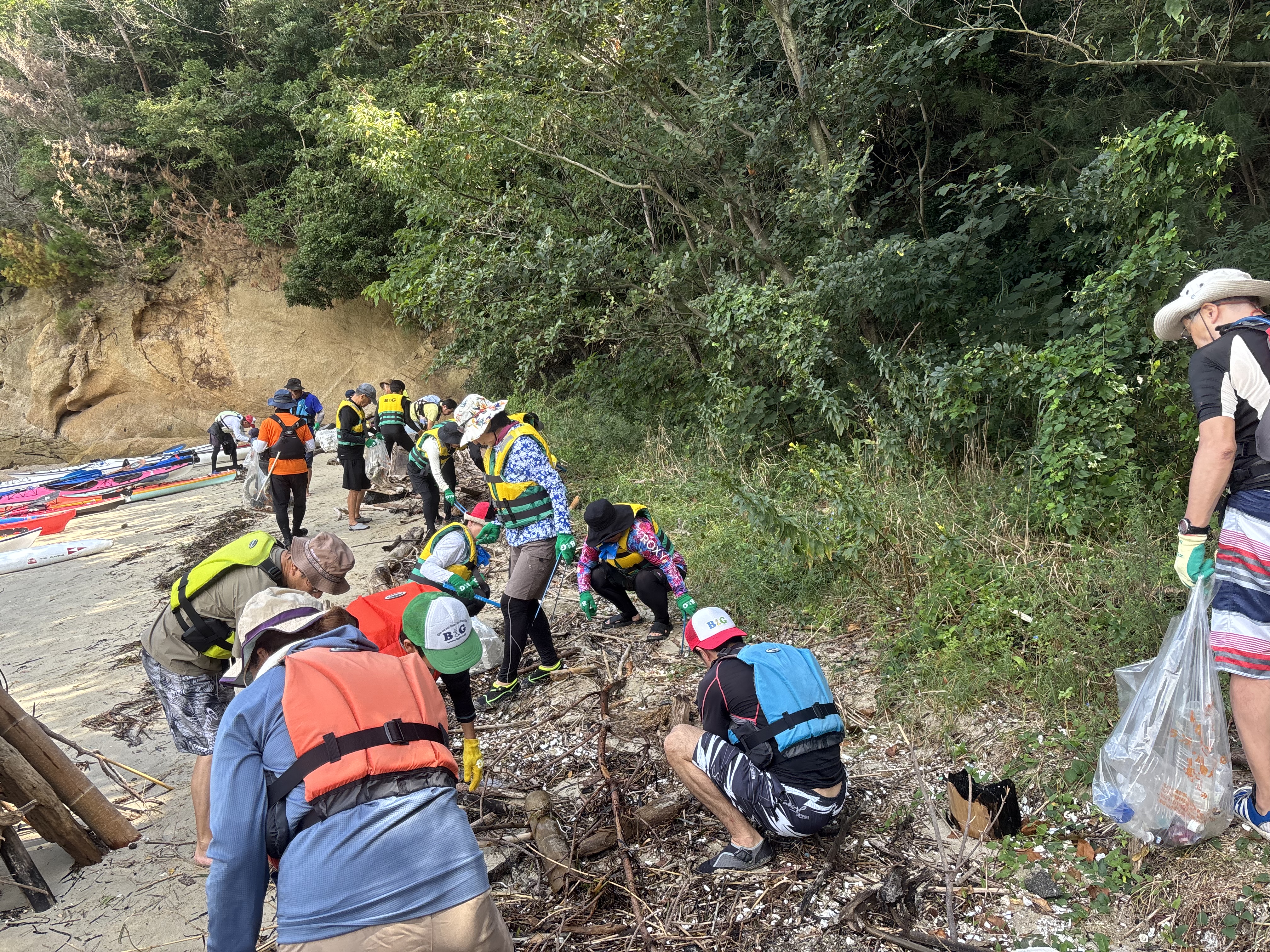 海ごみに関する紙芝居を読んで海ごみの現状について学習し、カヤック・SUPで無人の浜まで移動しながらゴミ拾いをおこないます。