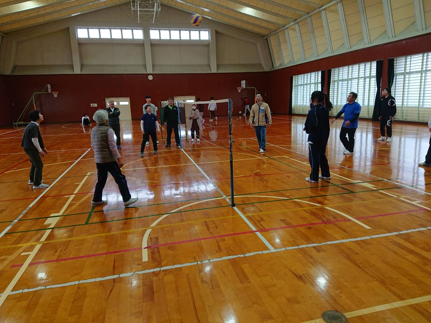 高齢者でもできるビーチボールを使ったソフトバレーボール大会です。