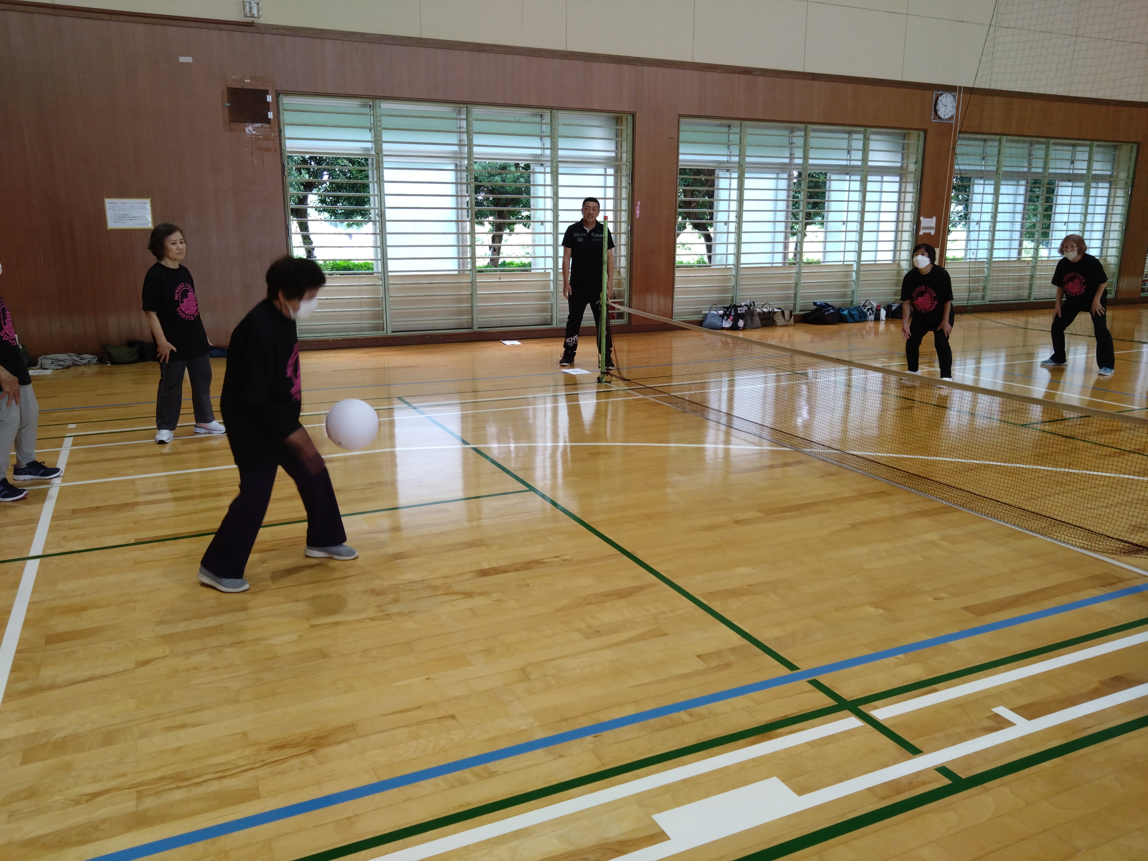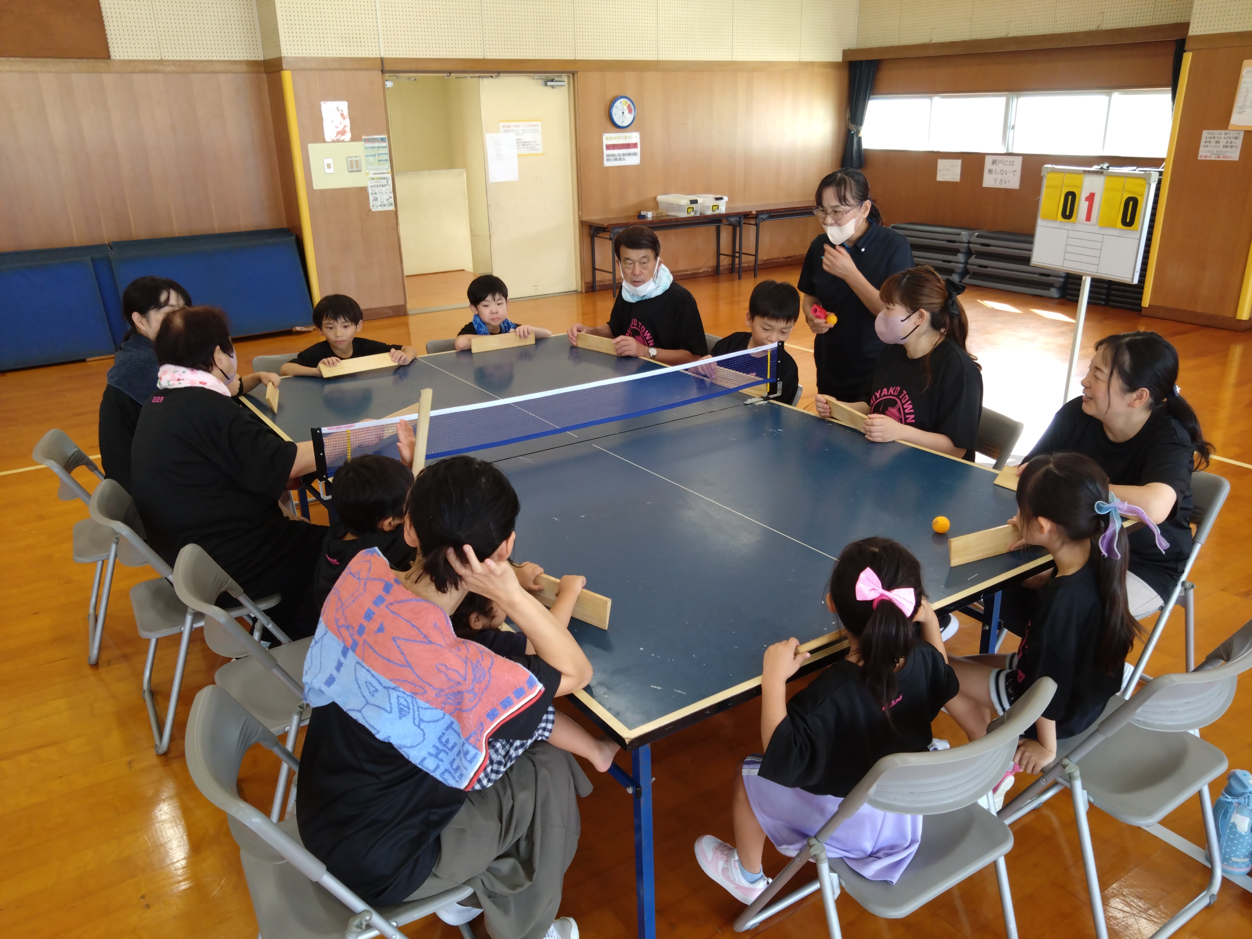 アダプテッドスポーツとして、卓球バレー、五目お手玉、バウンスボールを体験。