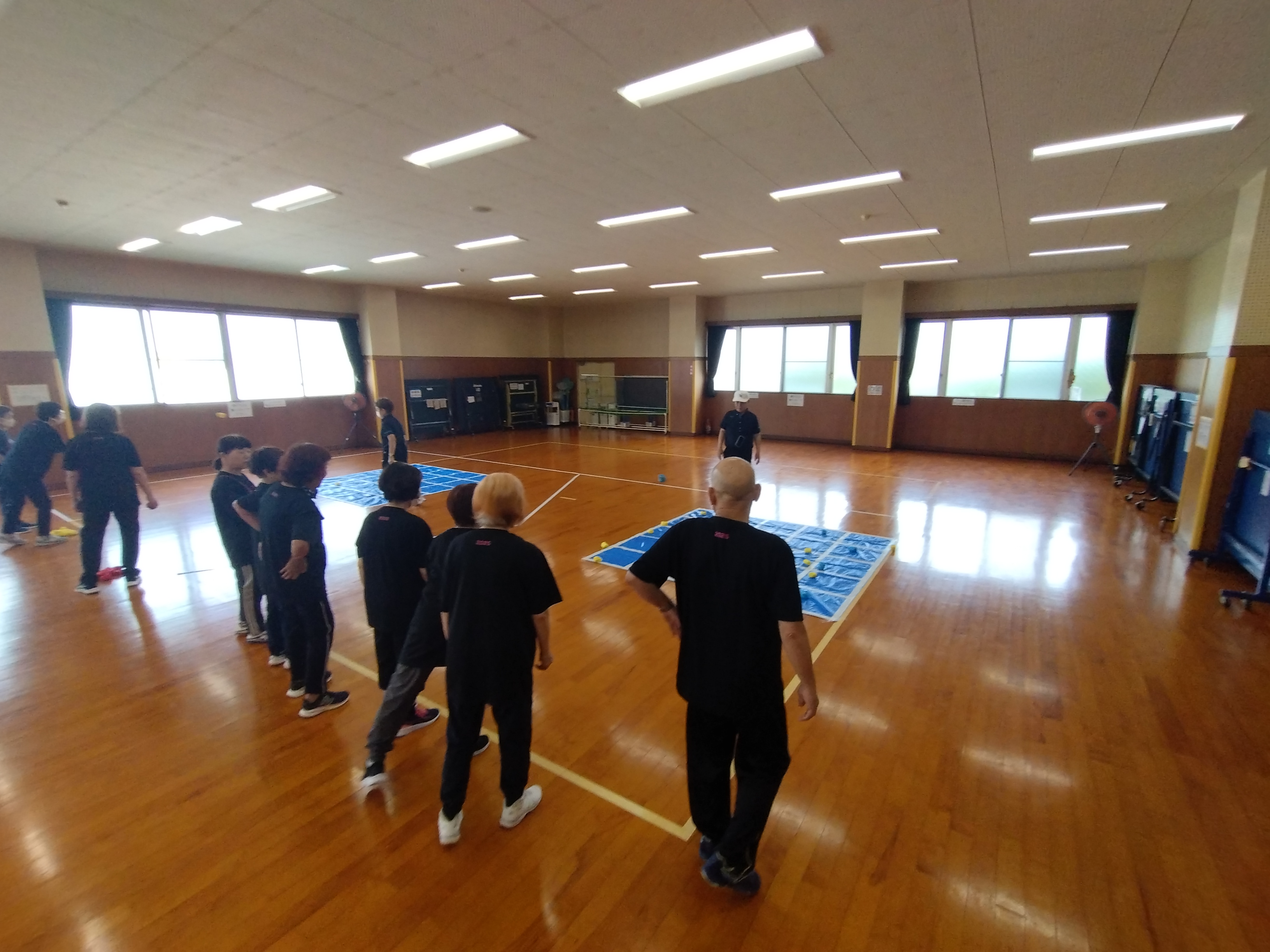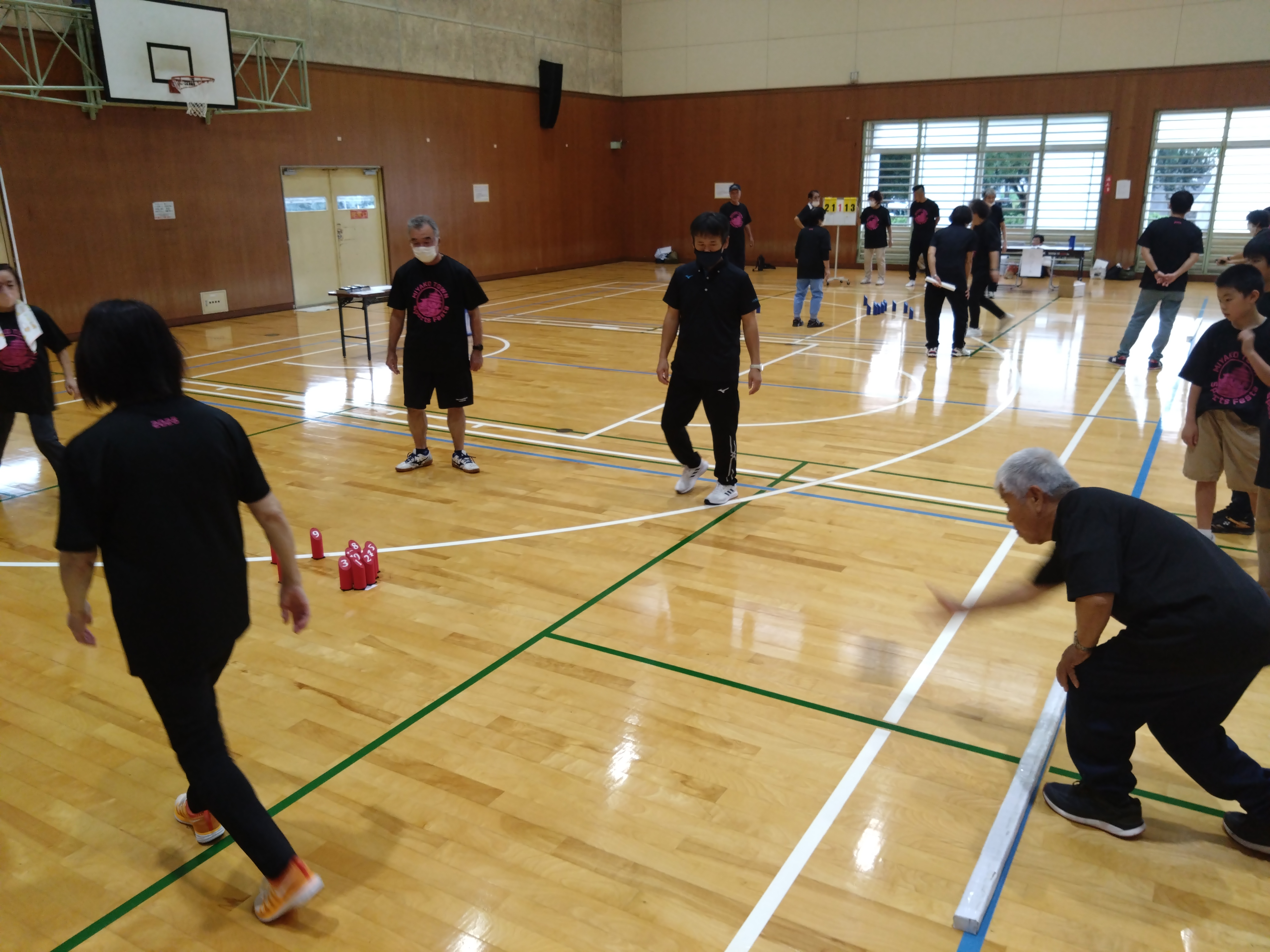 モルック大会では、熱中症対策として室内用モルックを用いて体育館で行いました。