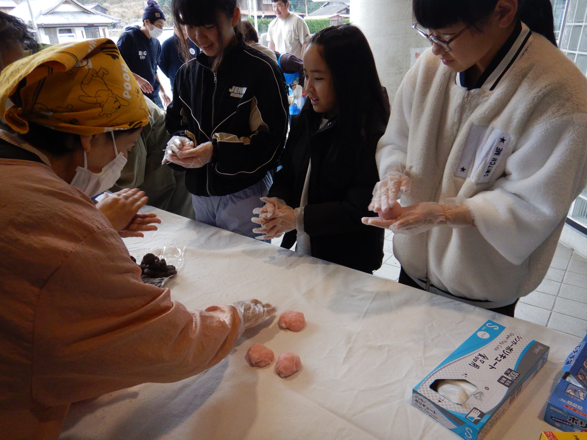 海洋クラブ員の年内最後の活動として、餅つき体験を実施しました。地元の婦人会に協力していただき、臼と杵を用いて、掛け声に合わせて精一杯餅をつきました。餅つきのあとに、婦人会のご厚意によりつきたての餅を使ったお雑煮をいただきました。皆でお雑煮を食べながら、様々な話で盛り上がり、今年一年を締めくくりました。
