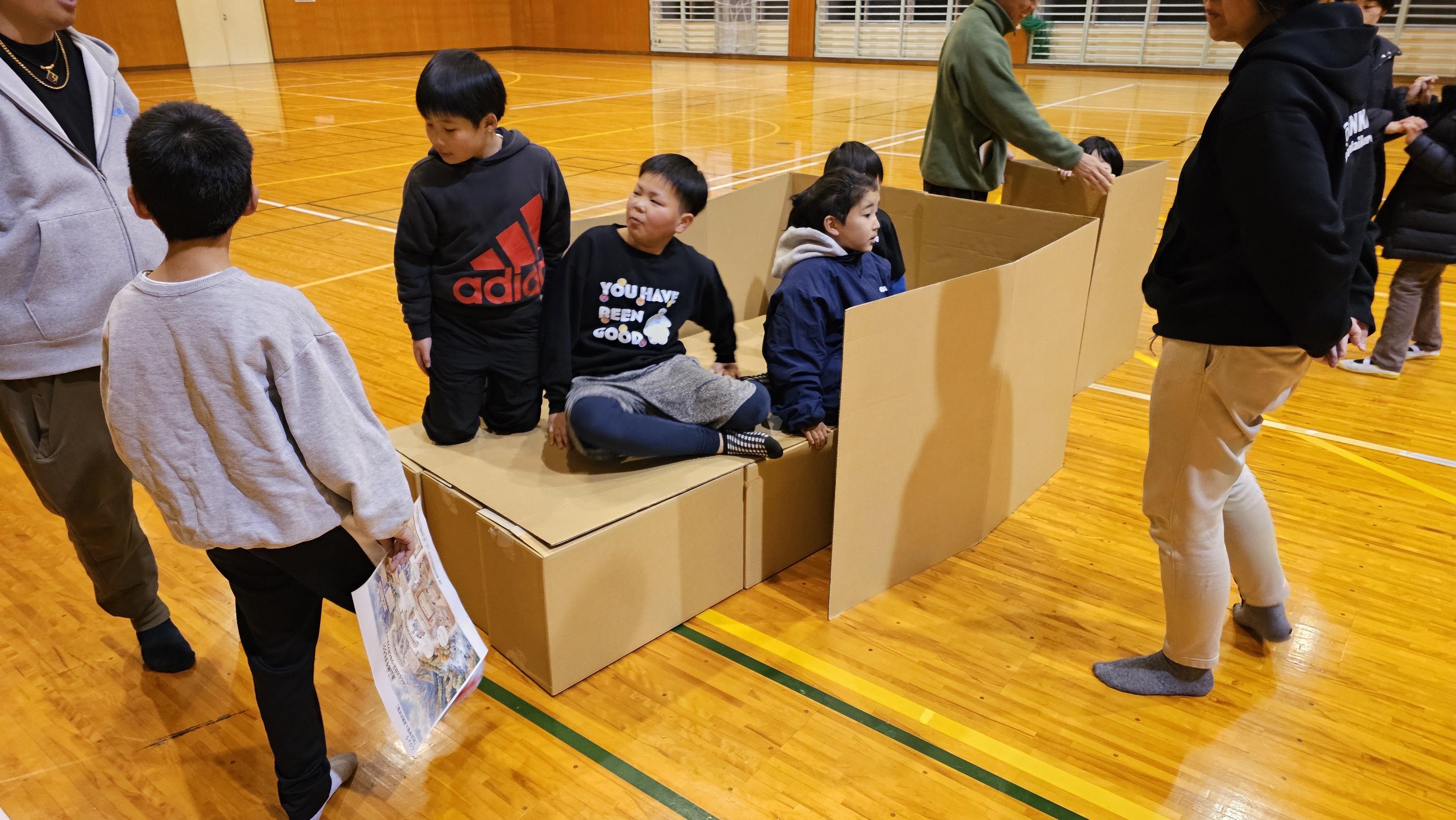 避難所で使用するダンボールベッドの組み立て体験を行いました。