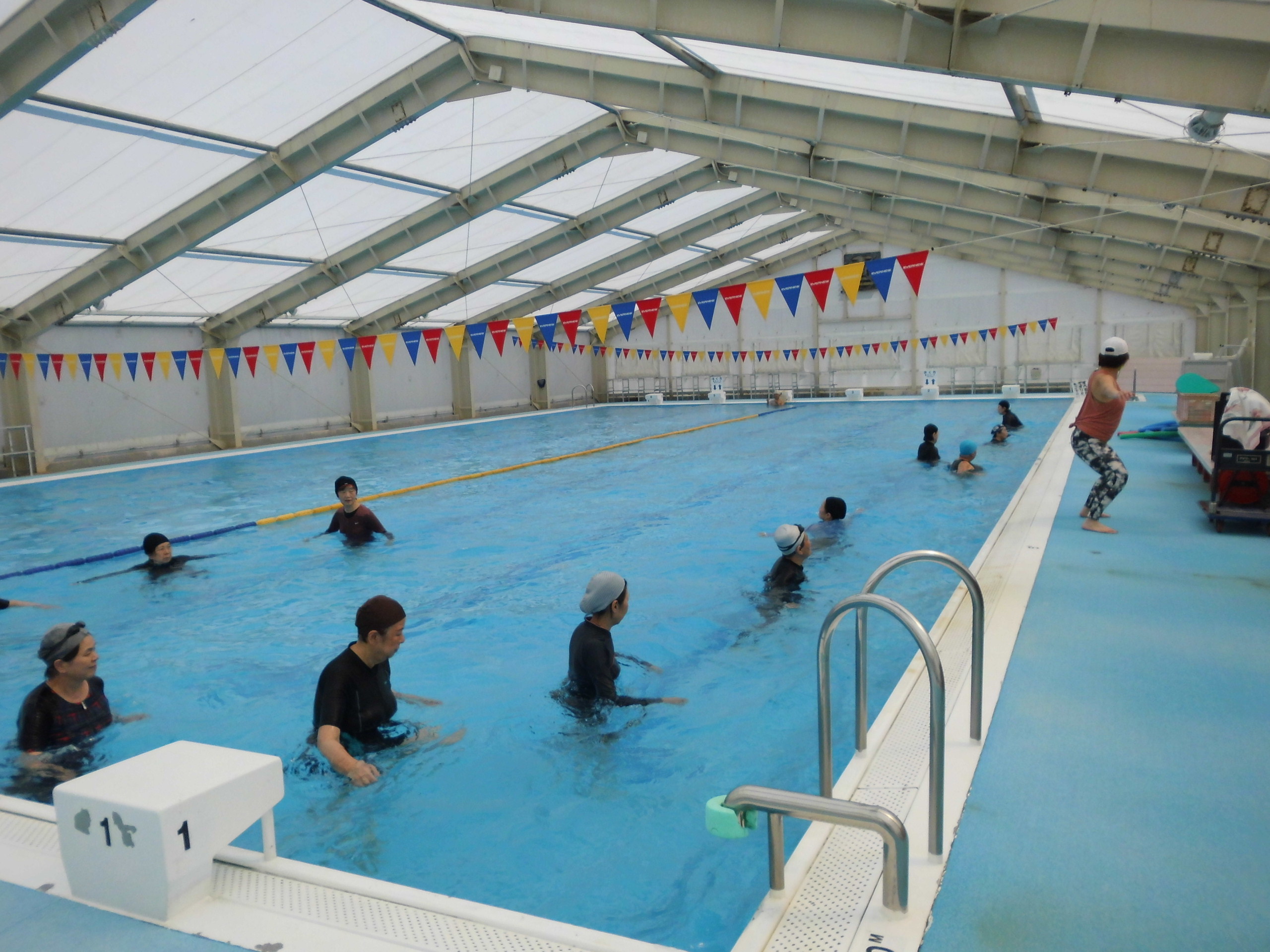 三重県 亀山市 マーチ&ストレッチ教室体験会水中ウォーキングの新プログラムです。浮力があるため歩きやすく、水の抵抗、水圧を利用し足腰を鍛えます。