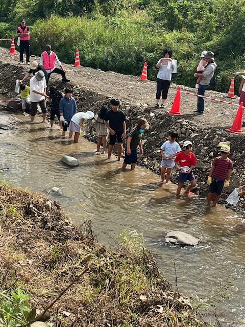 長野県 長和町 魚つかみ体験35名ずつ川に入り、15分以内で2匹の魚を捕まえます。