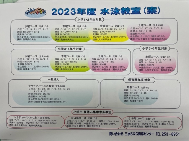長野県 飯綱町 水泳教室三水B&G海洋センターでは保育園年長から一般成人までの方を対象に、水泳教室を開催します。 毎年、町内の子供たちを中心に大勢の方が参加されています。