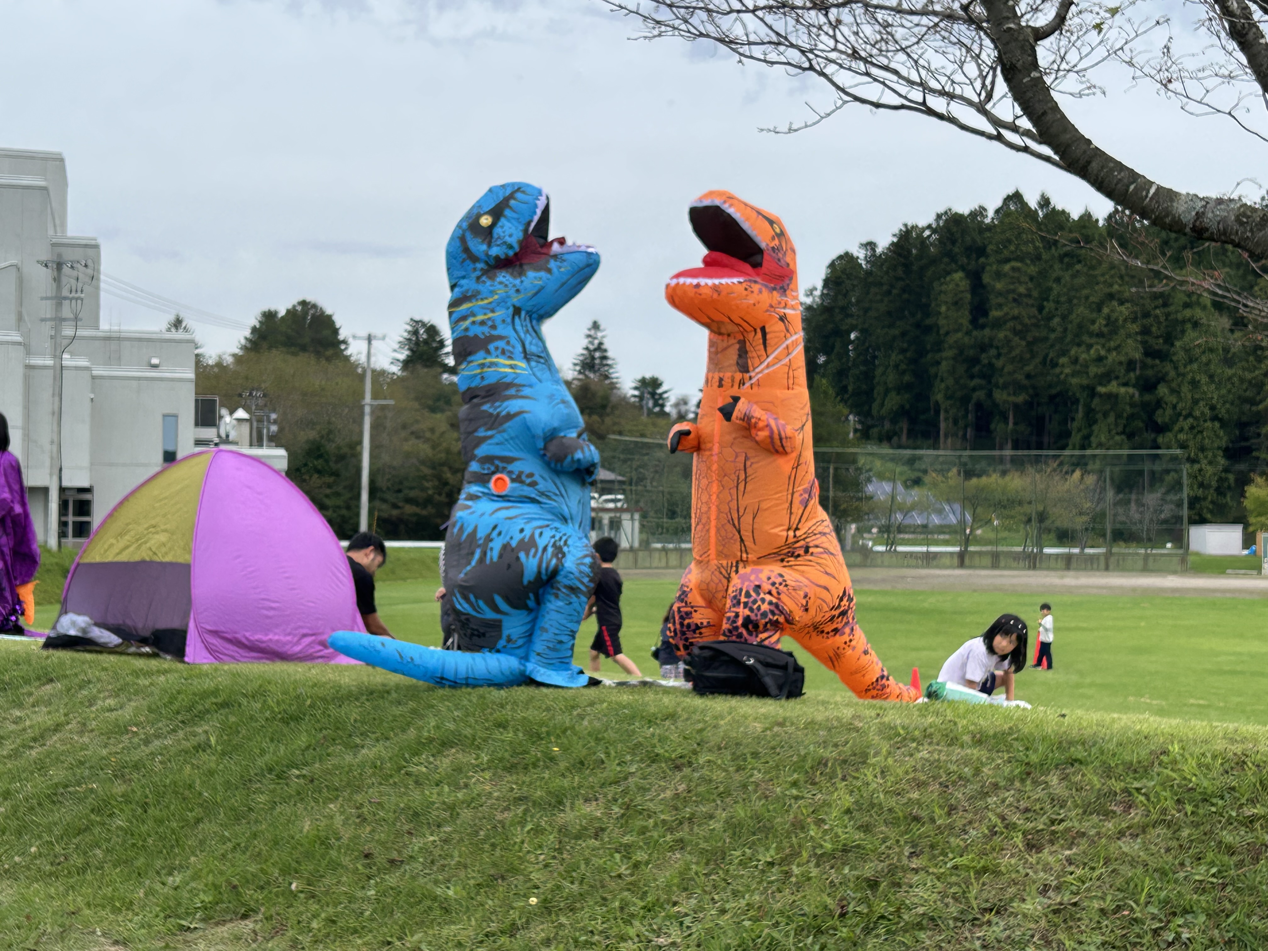 青森県 六戸町 ティラノサウルスレースINろくのへティラノサウルスの被り物を着て子どもから大人まで楽しくレースします。