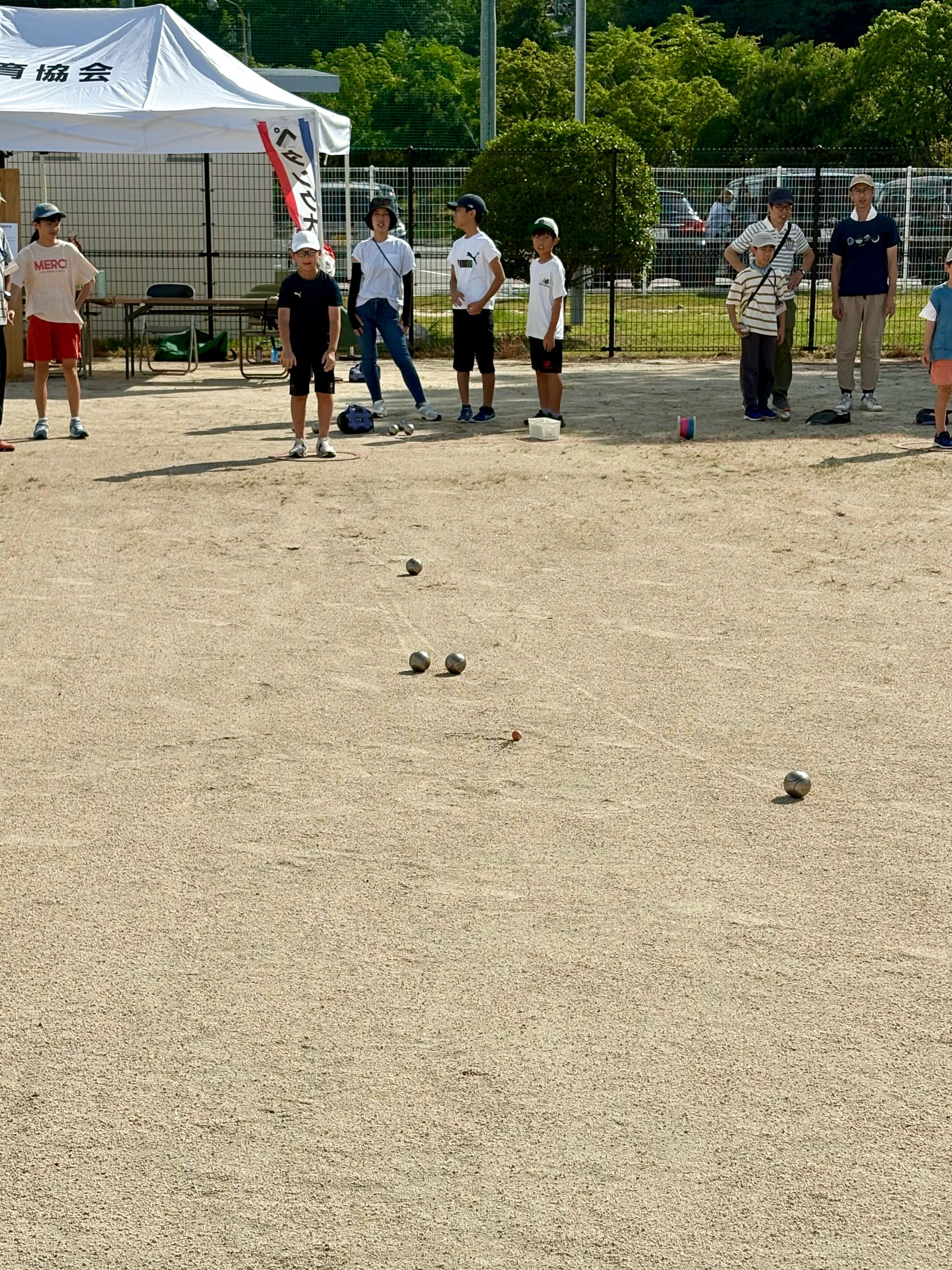 広島県 坂町 令和7年度青少年育成坂町民会議 球技大会坂町内の住民がグラウンドゴルフとペタンクをとおして交流を深めています。
