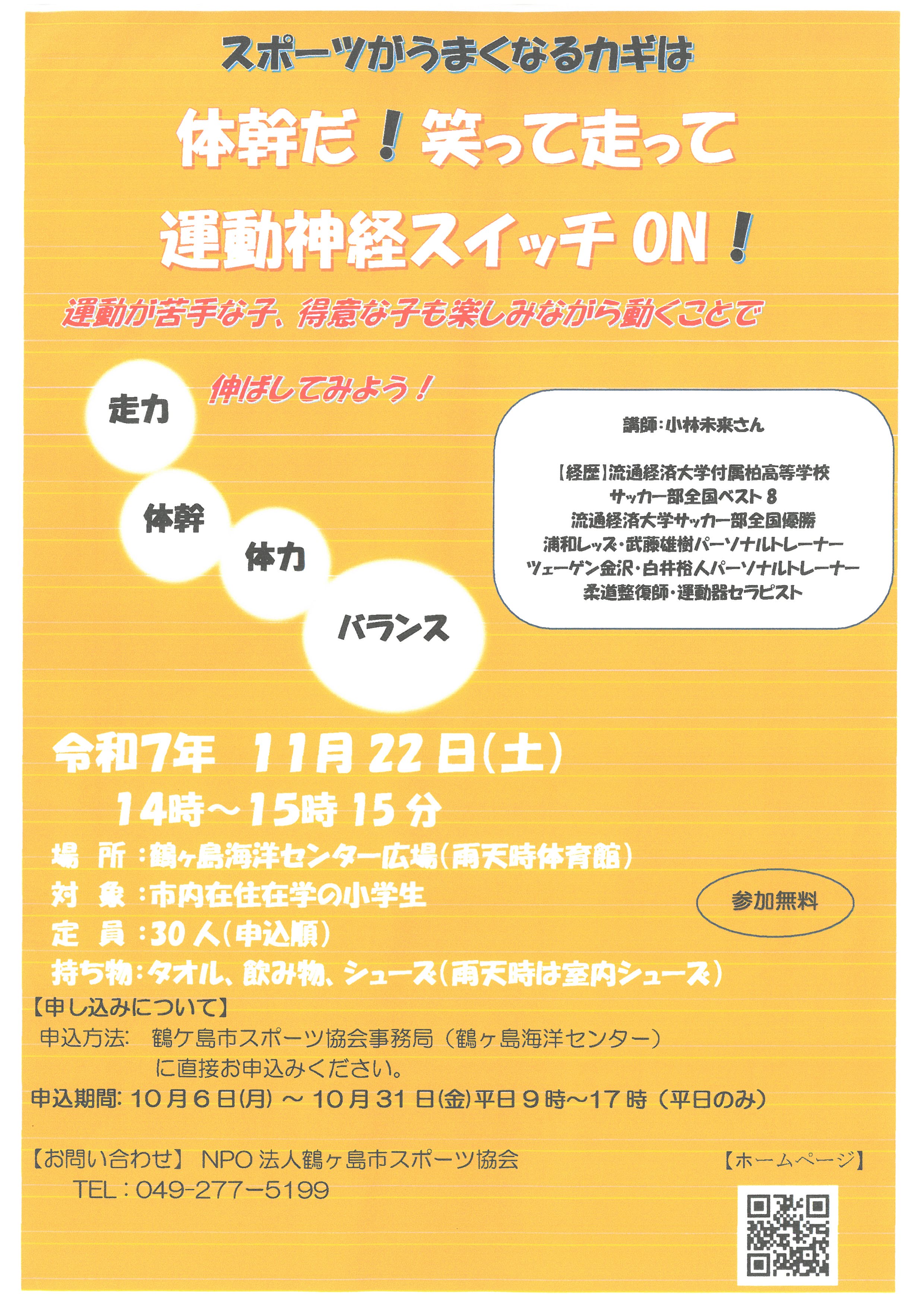 埼玉県 鶴ヶ島市 体幹だ!笑って走って運動神経スイッチON!内容:教室・研修会