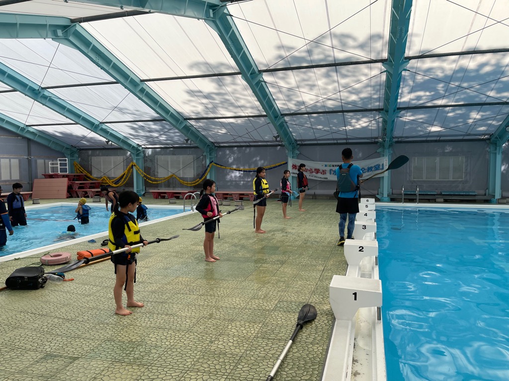 福岡県 八女市 八女市星野B&G海洋センター カヌー体験教室八女市星野B&G海洋センターのプールで行われる初心者カヌー教室です。