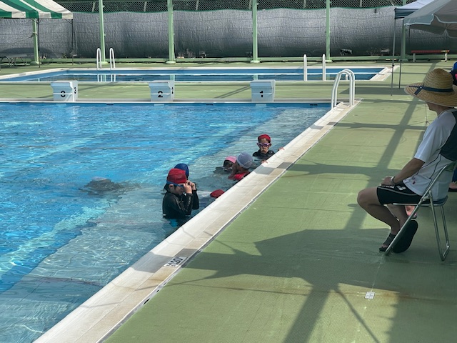 茨城県 八千代町 水泳教室2日目昨日スタートした水泳教室の2日目を実施し、とても暑い中、子供たちは笑顔で取り組んでくれました。 内容・・・息継ぎや蹴伸びやバタ足の練習・自由時間
