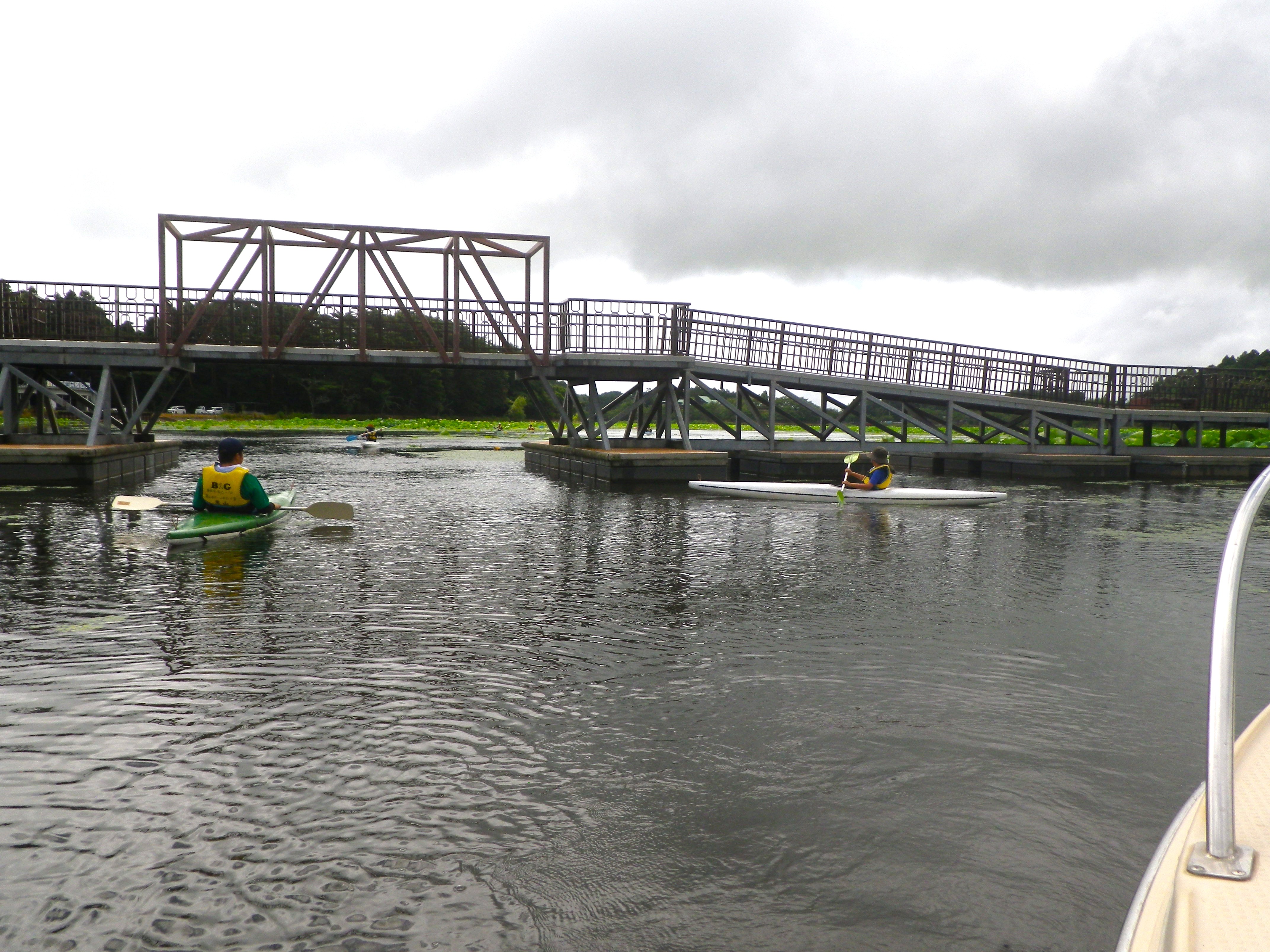 宮城県 登米市 カヌー教室(3回目)スポーツクラブパティオを対象にカヌー教室を実施。ライフジャケットの着用方法、パドリング、カヌーの乗艇方法などを指導しました。
