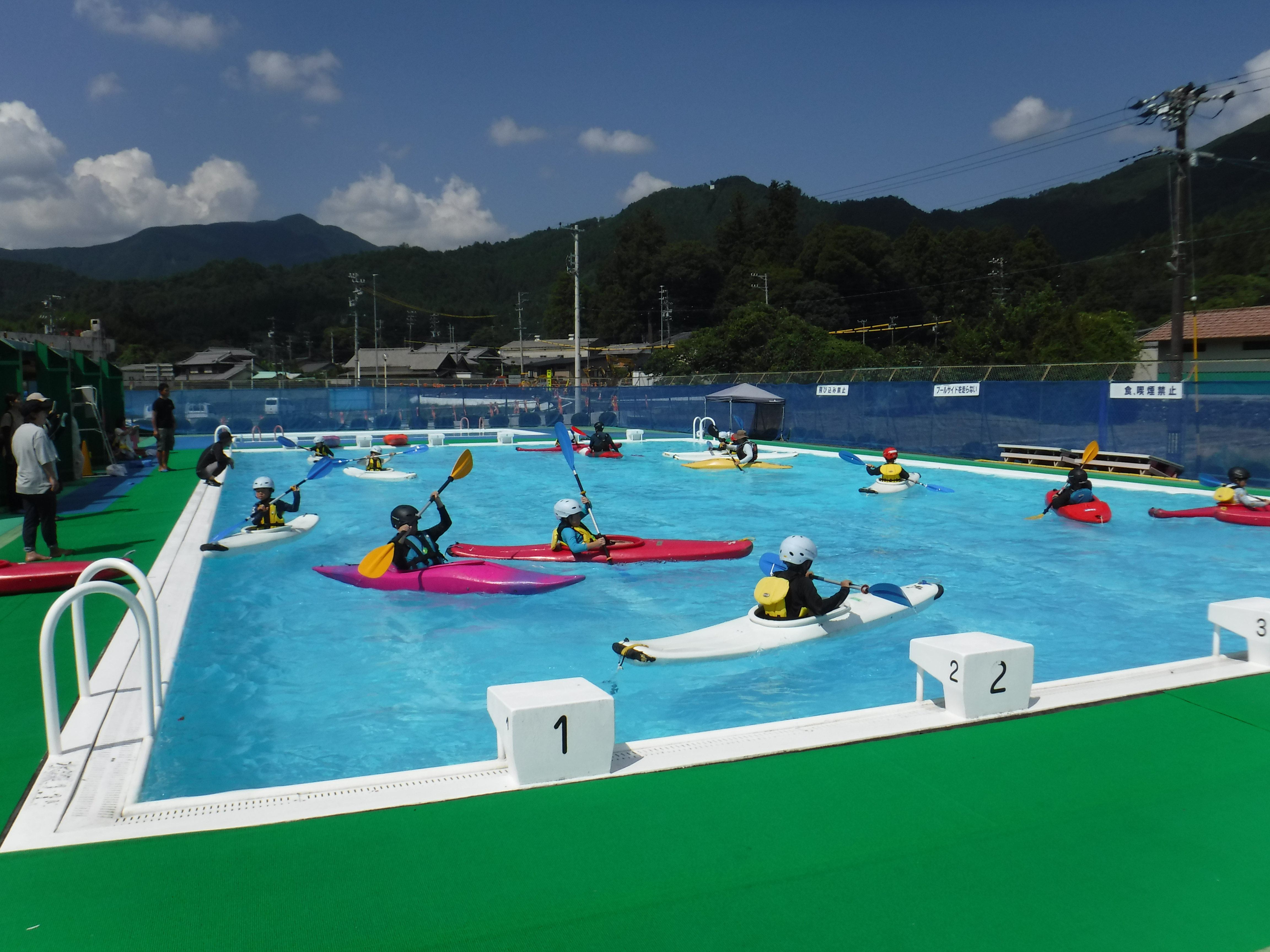 三重県 松阪市 2025 カヌー教室と水辺の安全教室 8/18 8/25プールで浮き身を習い水辺での安全について学びます。 カヌーのパドルの使い方を習い、プールでカヌー体験をします。