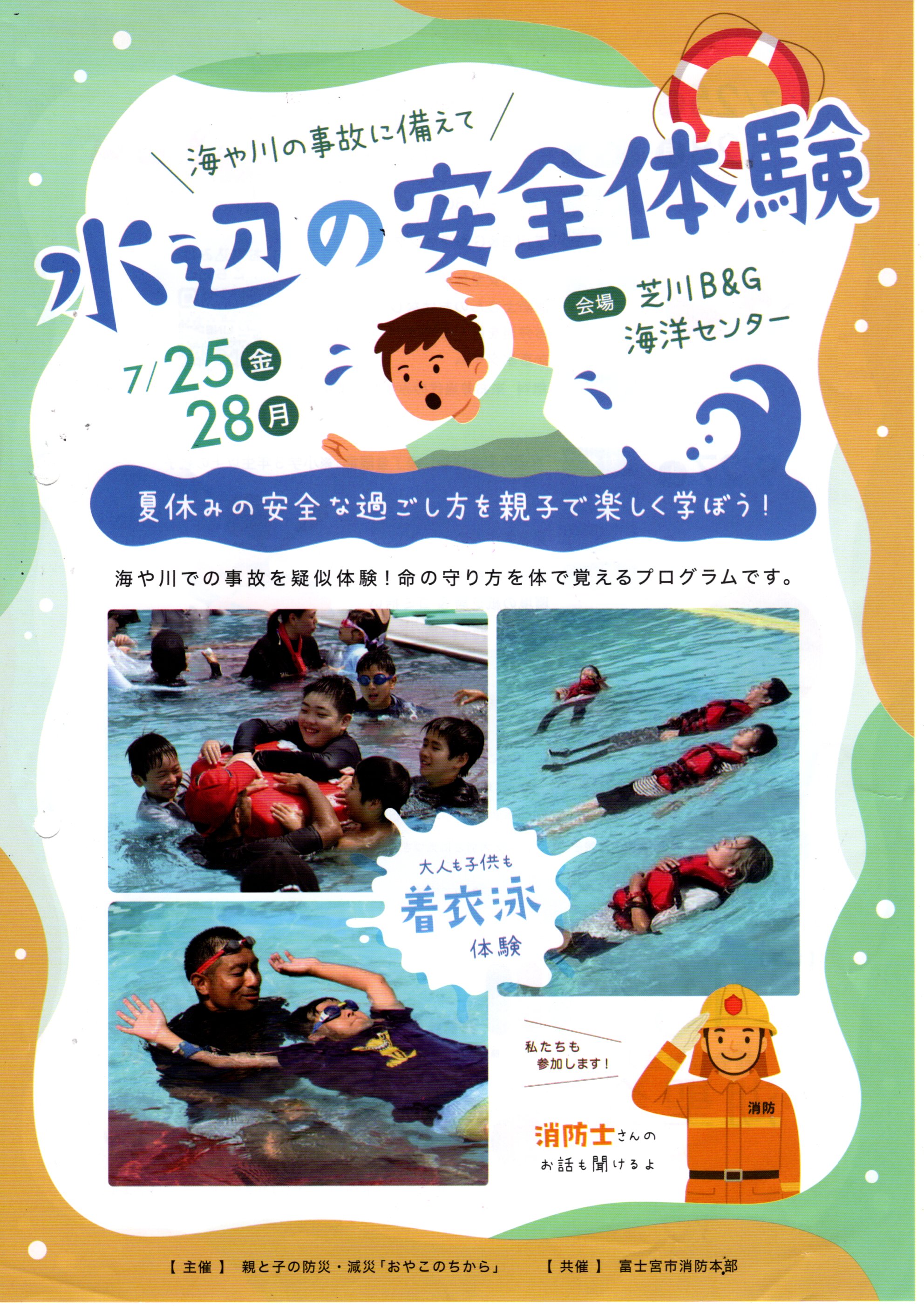 静岡県 富士宮市 水辺の安全体験海や川の事故に備えて 水辺の安全体験 夏休みの安全な過ごし方を親子で学ぼう 内容: