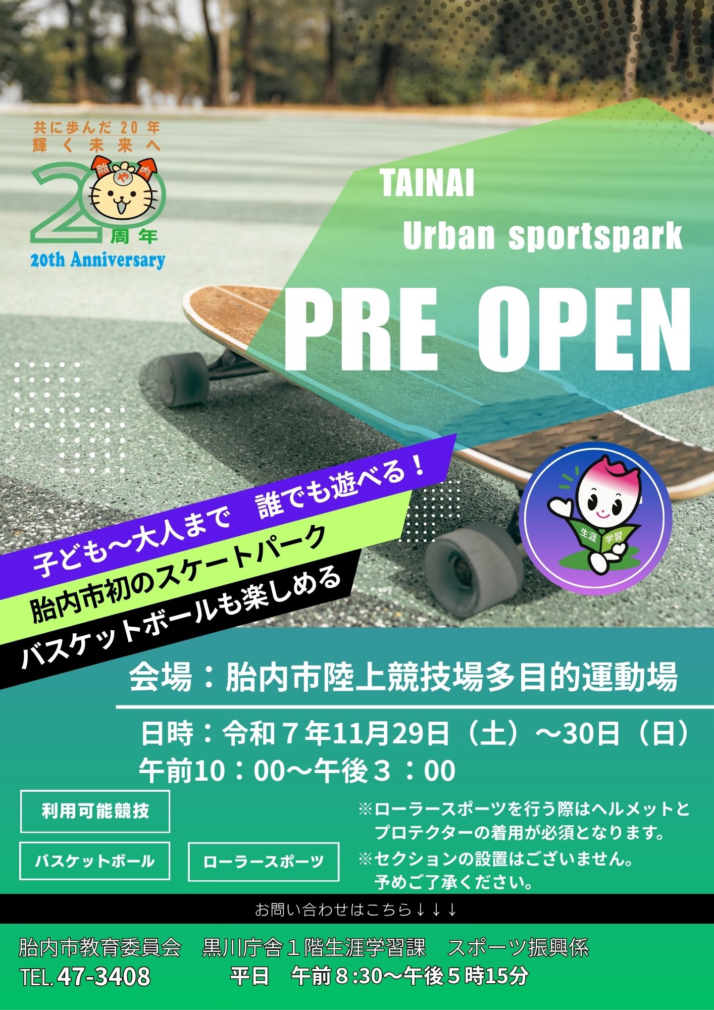 新潟県 胎内市 アーバンスポーツパーク プレオープンスケートボードやバスケットボール3×3など、いわゆる“アーバンスポーツ”を楽しめる多目的運動場が完成しました。 市にはこれまで「スケートボードができる場所を作ってほしい」といっ…