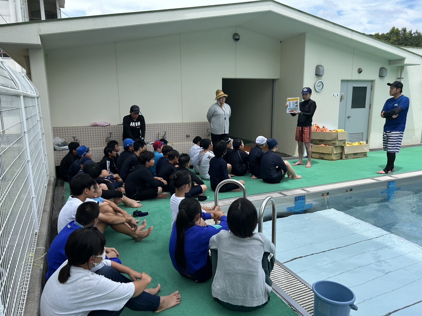 福岡県 大任町 水辺の安全教室開催大任町大任小学校プールで、水辺の安全教室を開催しました。 紙芝居で水に対しての勉強をしました。 ライフジャケット着用、ペットボトルを使っての背浮き体験を行いました。