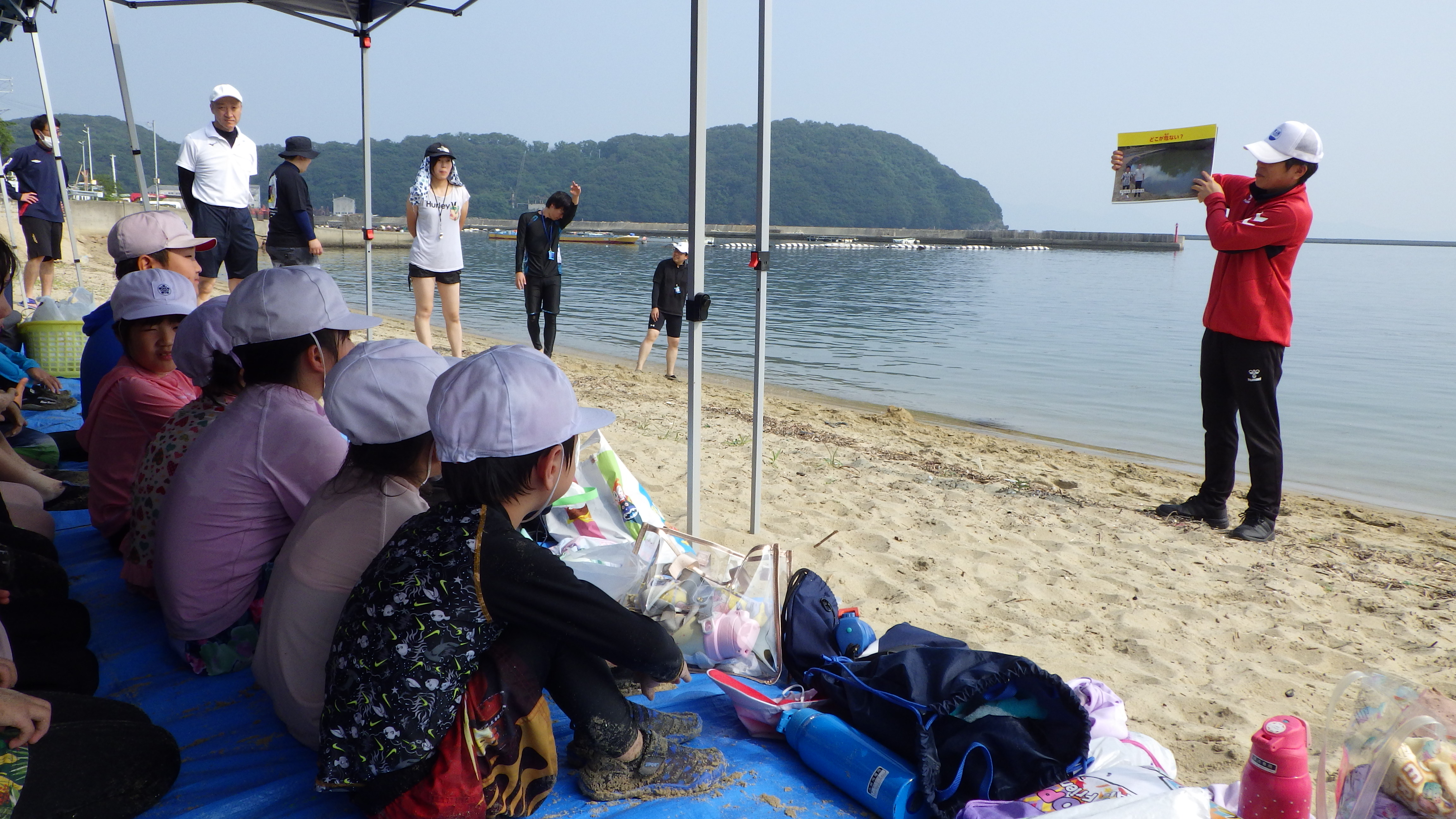 兵庫県 姫路市 海辺の安全指導水辺の危険について、また命を守る行動の大切さを学ぶ教室です。 家島の豊かな海にふれ、ふるさとの自然を大切にしようとする意欲を高めるイベントです。