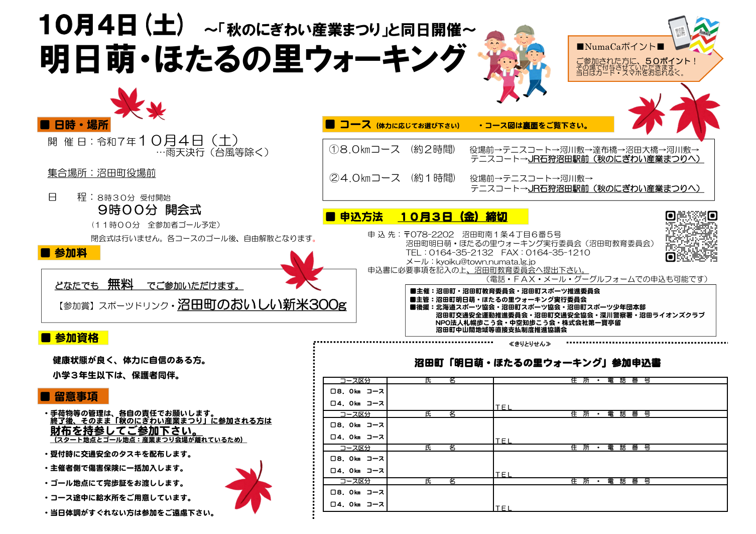 北海道 沼田町 明日萌・ほたるの里ウォーキング内容:健康関連