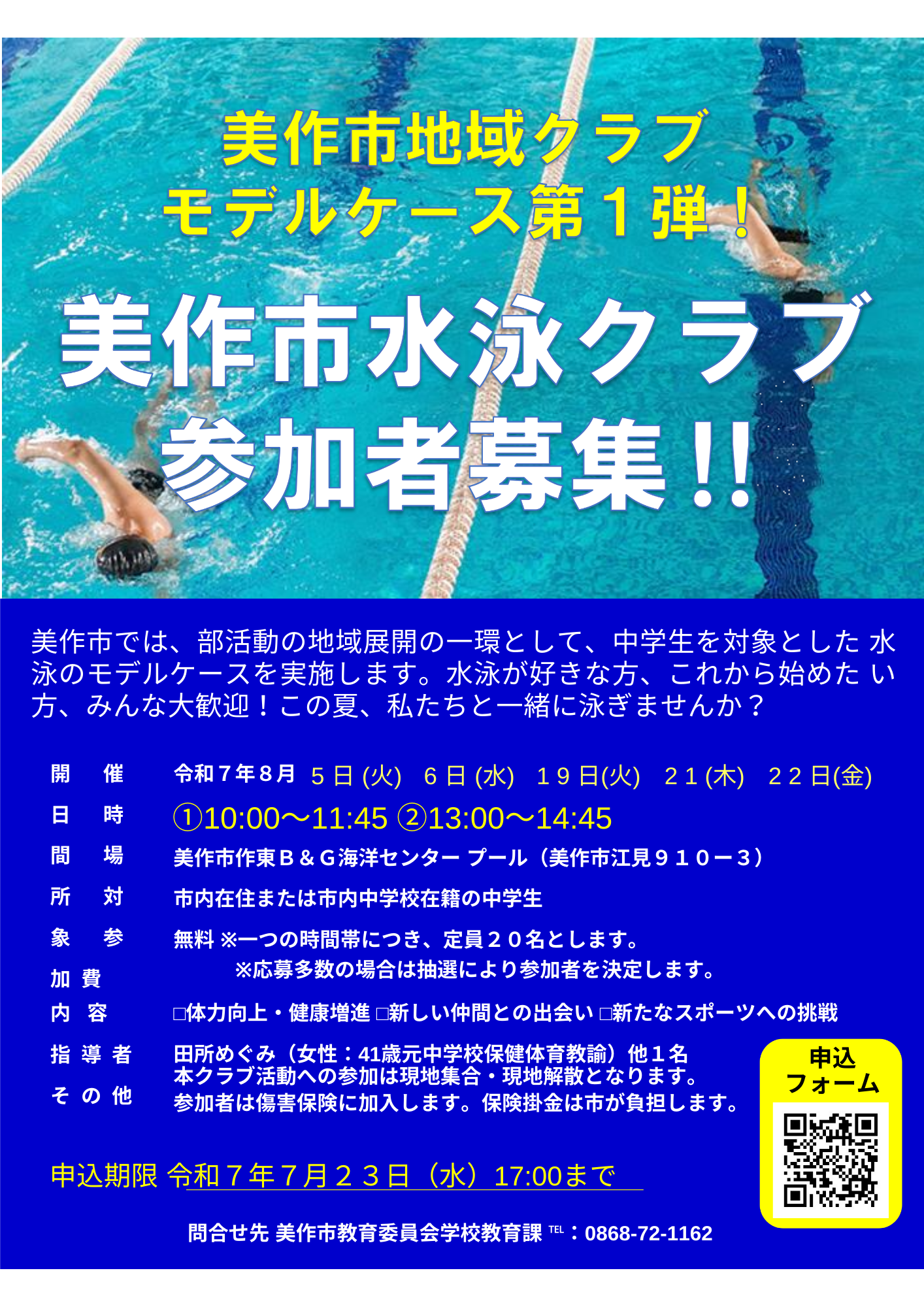 岡山県 美作市 美作市水泳クラブ参加者募集内容:スポーツ大会・イベント