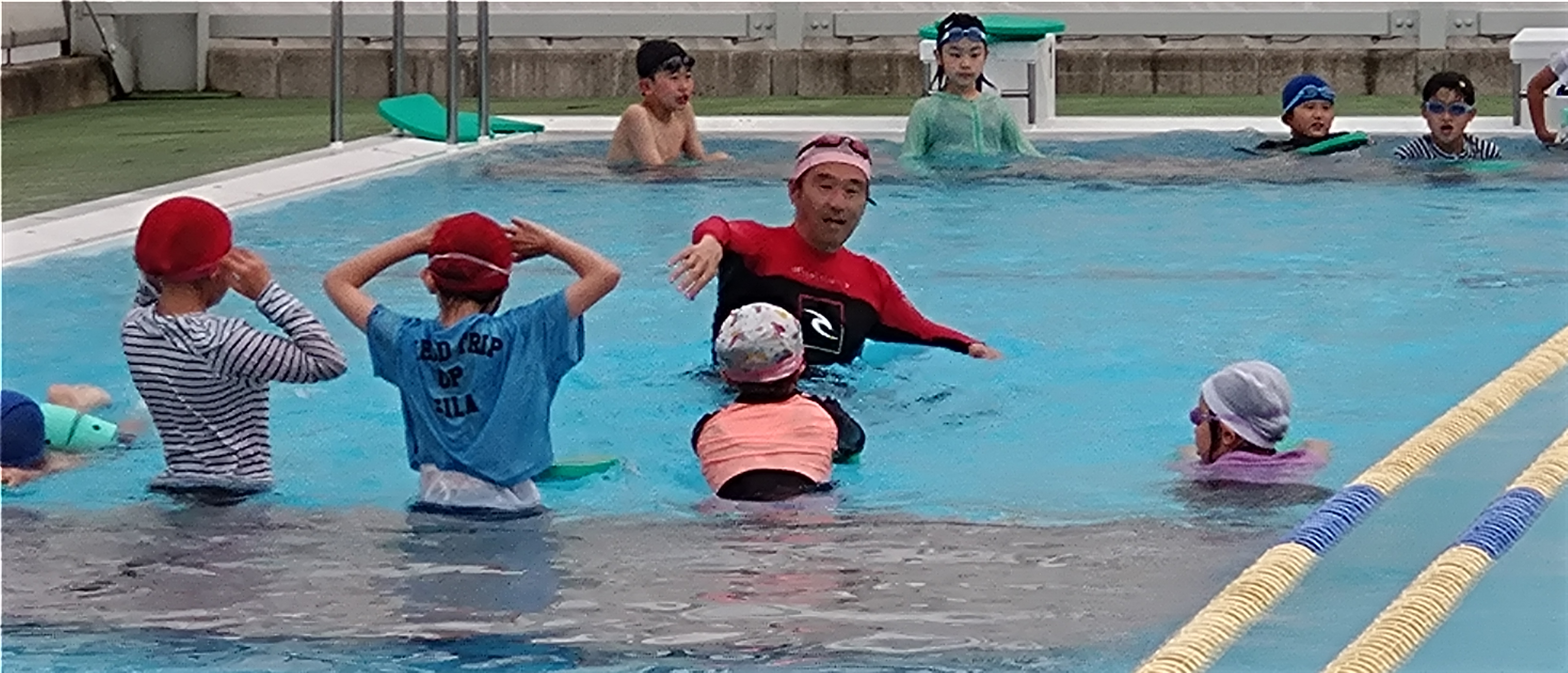 栃木県 那須塩原市 B&G前期ジュニア水泳教室初めてプールに入る人や、少し泳げる人、上手に泳ぎたい人など個人のレベルに合わせて行います。