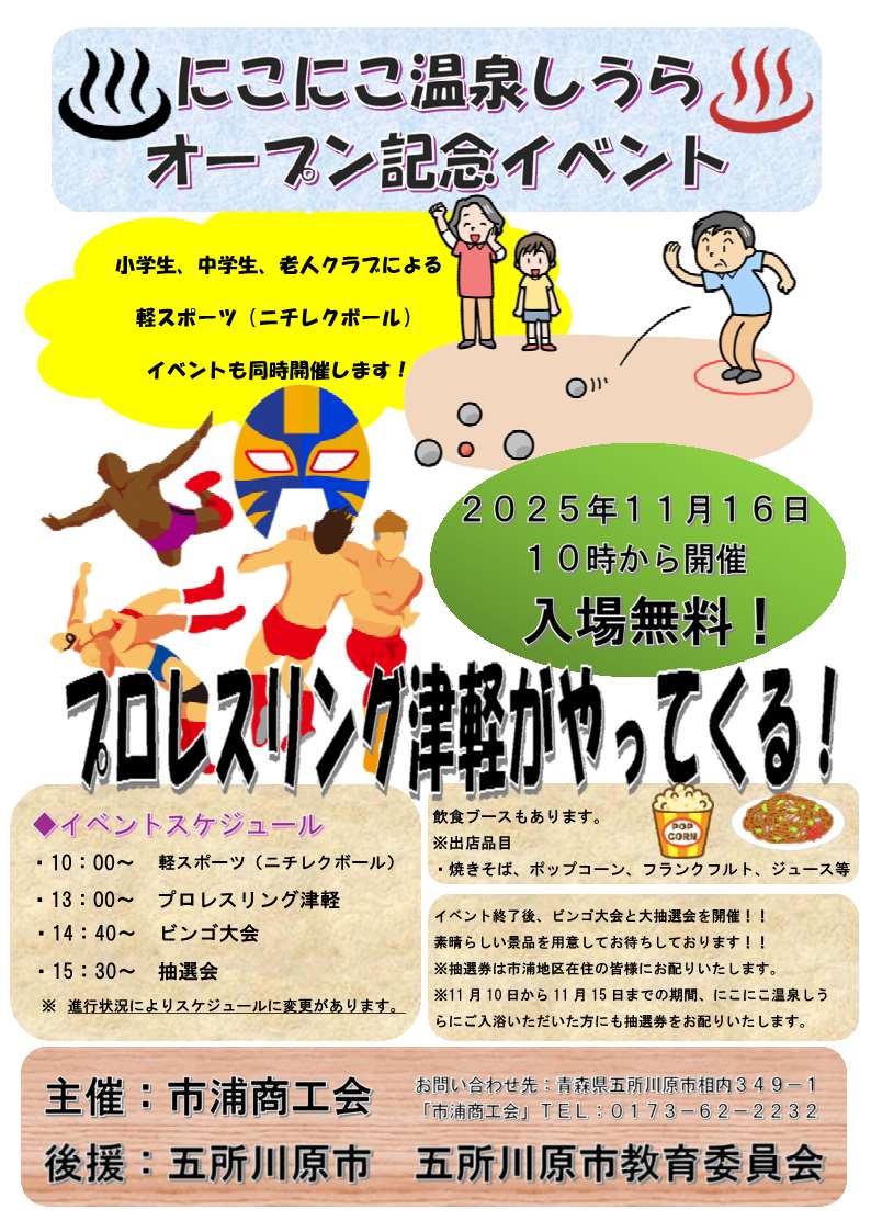 青森県 五所川原市 にこにこ温泉しうらオープン記念イベント内容:スポーツ大会・イベント