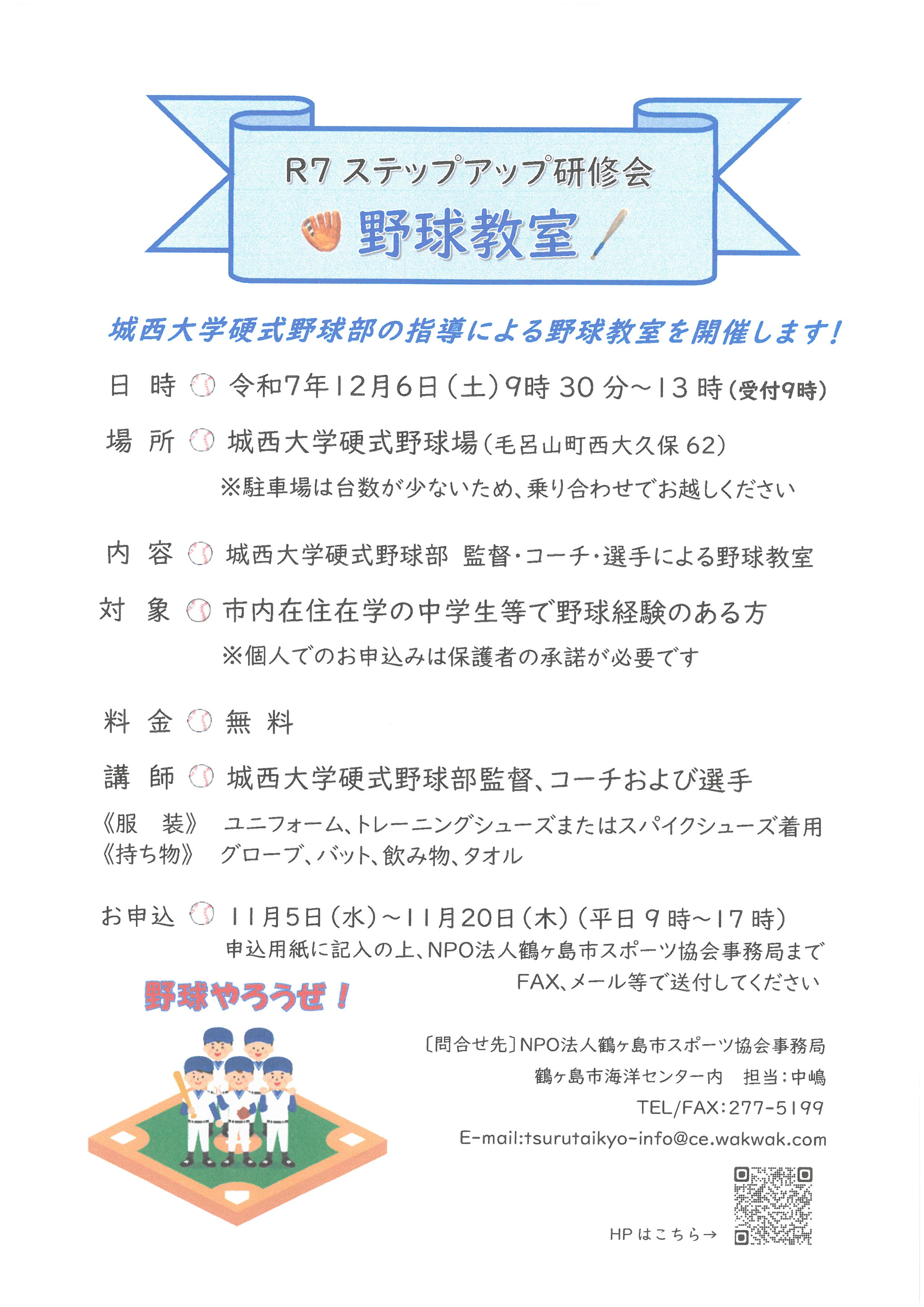 埼玉県 鶴ヶ島市 野球教室内容:教室・研修会