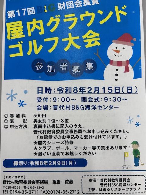 岩手県 普代村 第17回B&G財団会長賞屋内グランドゴルフ大会内容:スポーツ大会・イベント