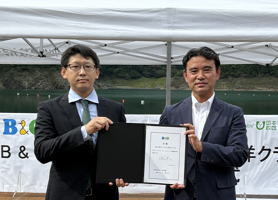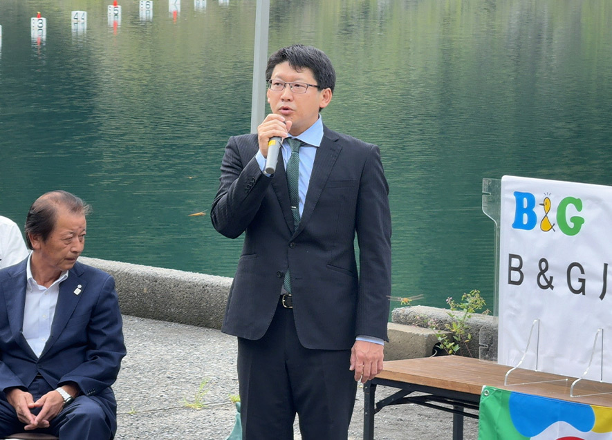 B&G財団常務理事の朝日田は、今回の舟艇器材配備をきっかけに「カヌーの町」川根本町が人と水辺、カヌーと人をつなぐ場として全国に広まっていくことを期待していると述べ、総額200万円の舟艇器材の目録を海洋クラブ代表の風間氏に手渡した。