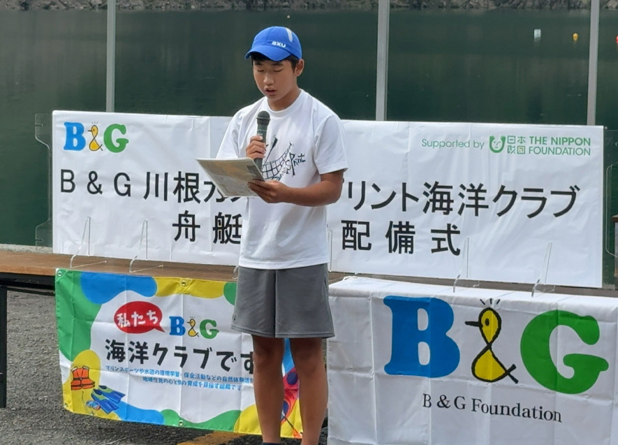 海洋クラブ員を代表して望月良真さんは、現在カヌースプリントチームで日々練習に取り組んでおり、今回配備された器材を活用してインターハイ優勝を狙いたいと話した。