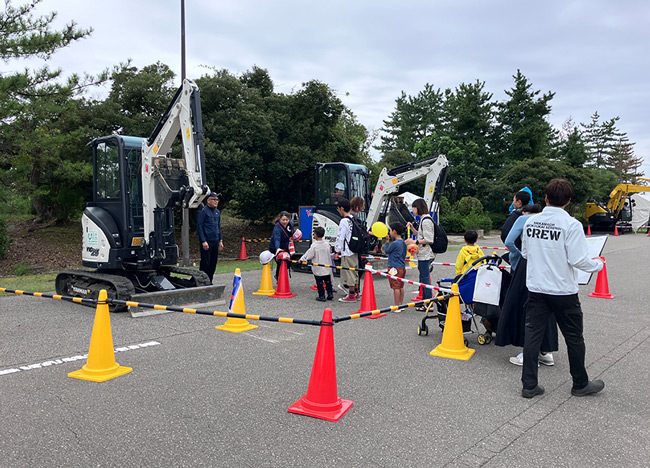 石川県志賀町の「志賀町商工祭」において、重機操縦体験と子ども防災教室を開催し、地元の小中学生や親子連れ約230人が参加した。
