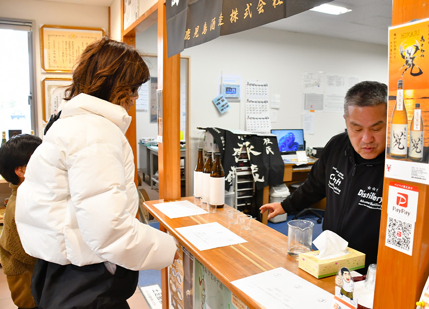 加点対象となるボーナスミッションも用意された。鹿児島酒造では、焼酎の香り当てクイズを実施。麦焼酎、芋焼酎に加え、鹿児島ならではの焼き芋焼酎の3種類をかぎ分けるミッションに挑戦し、見事正解すれば30点を獲得できる内容だ。参加者からは「焼き芋焼酎はすぐわかったが、残る2つのかぎ分けは難問だった」との声も聞かれ、ミッションを大いに楽しんだ様子だった。